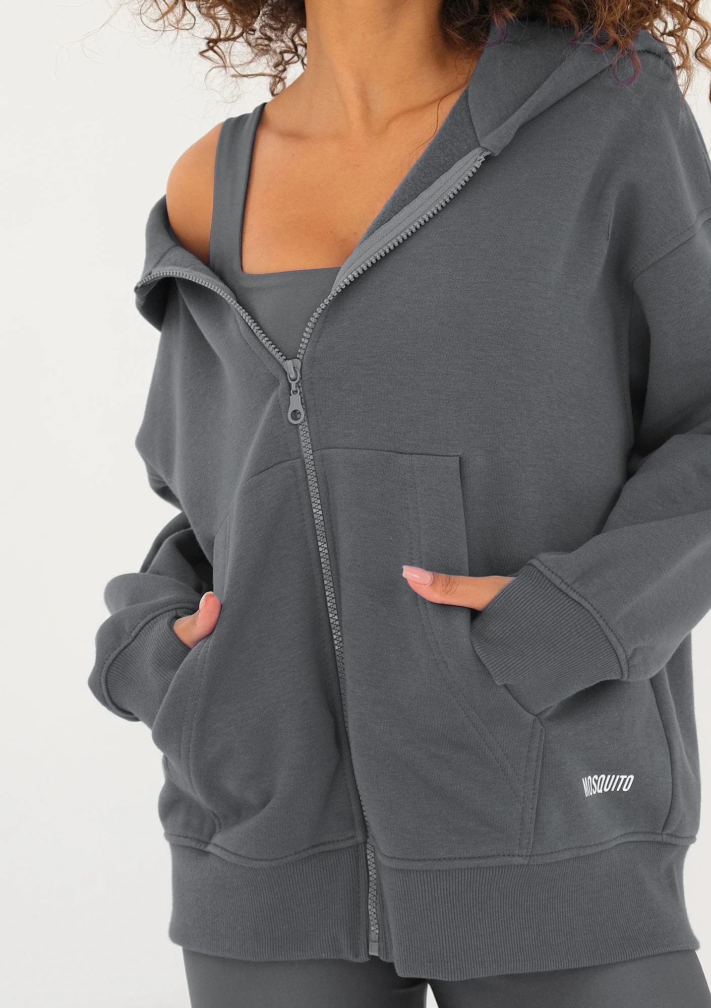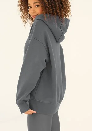 Modne bluzy damskie oversize są coraz chętniej wybierane przez kobiety o różnej budowie ciała. Doskonale prezentują się zarówno na sylwetce szczupłej, jak i u Pań chcących ukryć nadprogramowe kilogramy. Uniwersalność fasonu sprawia, iż z powodzeniem noszony jest przez różne grupy wiekowe, zarówno nastolatki, jak i dojrzałe kobiety. Ciemny szary kolor idealnie pasuje do większości barw, dzięki czemu z łatwością można skomponować stylizację z innymi ubraniami. Bluza posiada funkcjonalne rozwiązania przydatne na co dzień, takie jak kaptur oraz wygodne ściągacze.