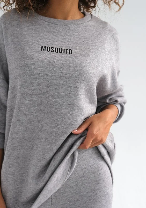 Szara bluza damska oversize o prostym kroju z czarnym logiem marki. Starannie wykonana w polskiej szwalni, z ciepłej dzianiny.