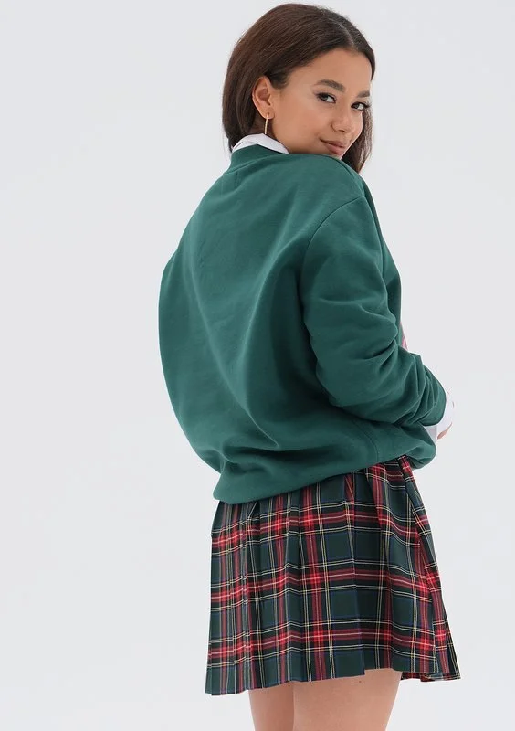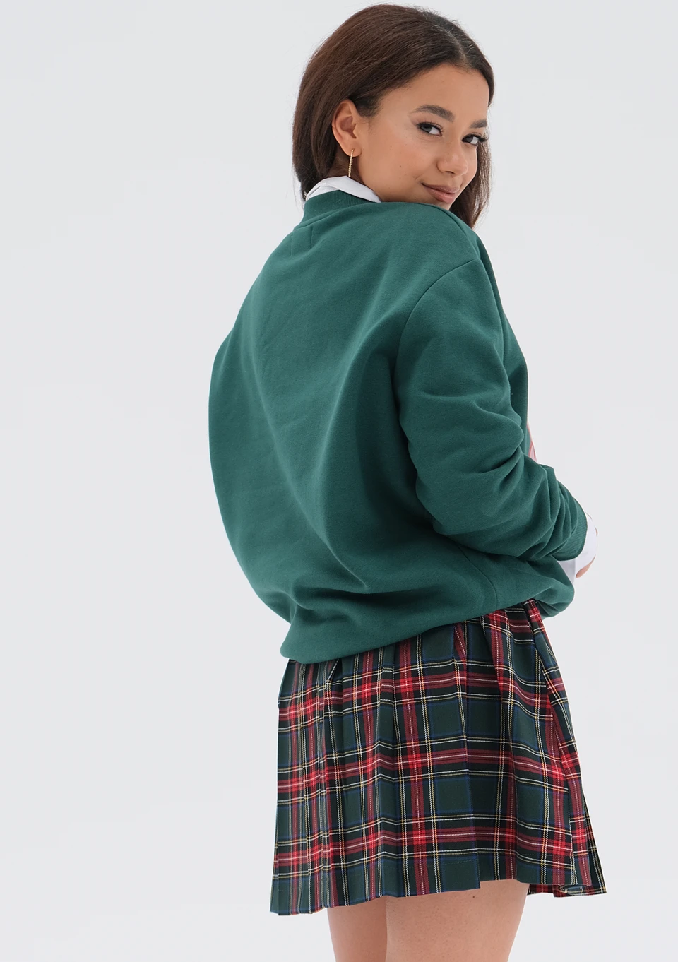 Zielona bluza świąteczna z uroczym napisem, wykonana z miękkiej dzianiny bawełnianej. Idealna na gwiazdkowy prezent lub jako element świątecznej stylizacji.
