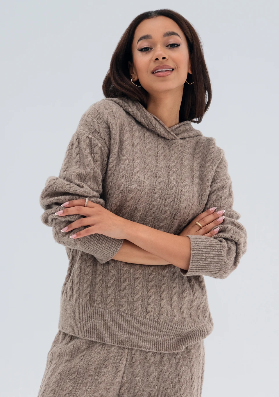 Swetrowa bluza z kapturem, wykonana z ciepłej i miękkiej dzianiny. Oczarujesz w niej wyjątkowym, a zarazem urokliwym, zimowym stylem.