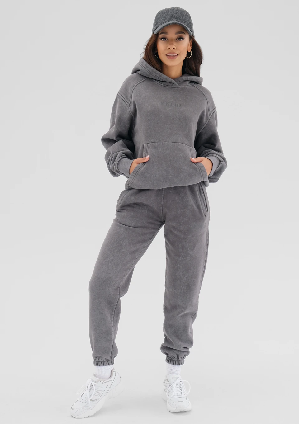 Szara bluza damska z kapturem i stylowym efektem sprania. To modna propozycja wygodnej kangurki na zimę i sezon przejściowy. Model posiada poduszki nadające efektowności.