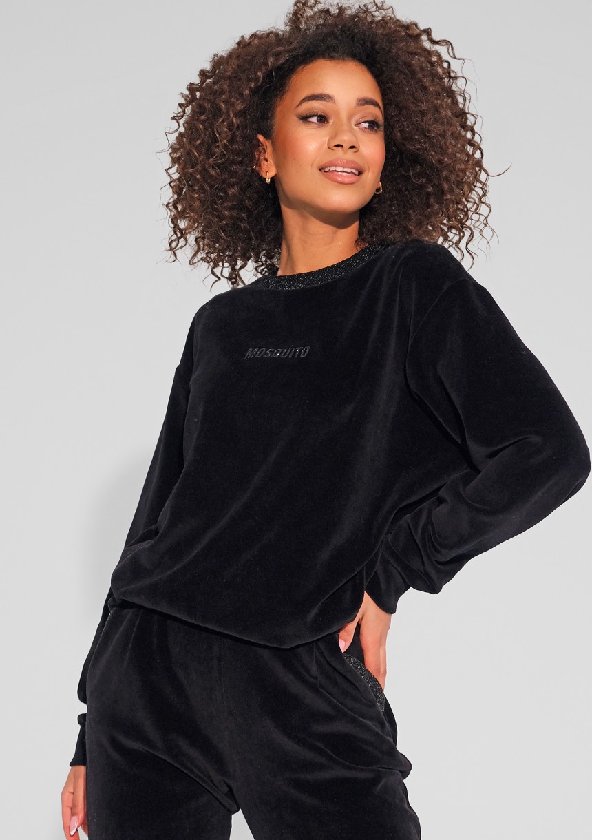 Fabi - Bluza welurowa z błyszczącymi detalami Czarna