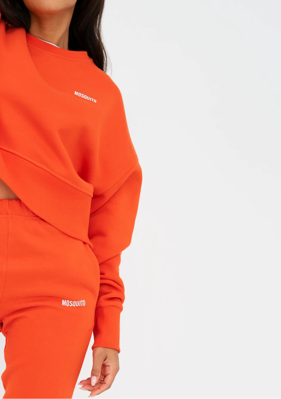 Pomarańczowa bluza damska o swobodnym kroju oversize. Model z dzianiny bawełnianej z miękkim meszkiem od spodu.