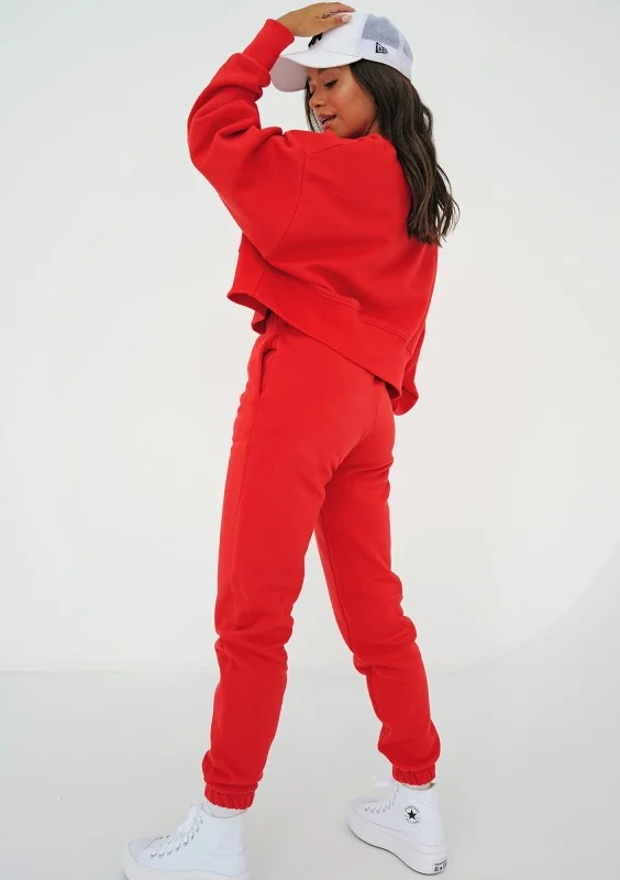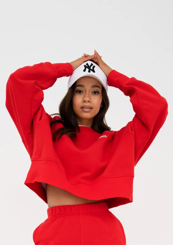 Intensywnie czerwona bluza damska o swobodnym kroju oversize. Model z dzianiny bawełnianej z miękkim meszkiem od spodu.