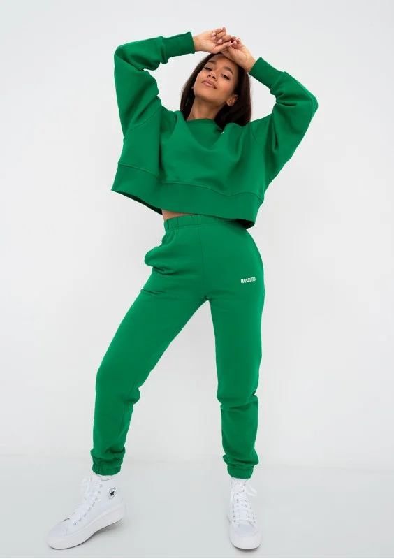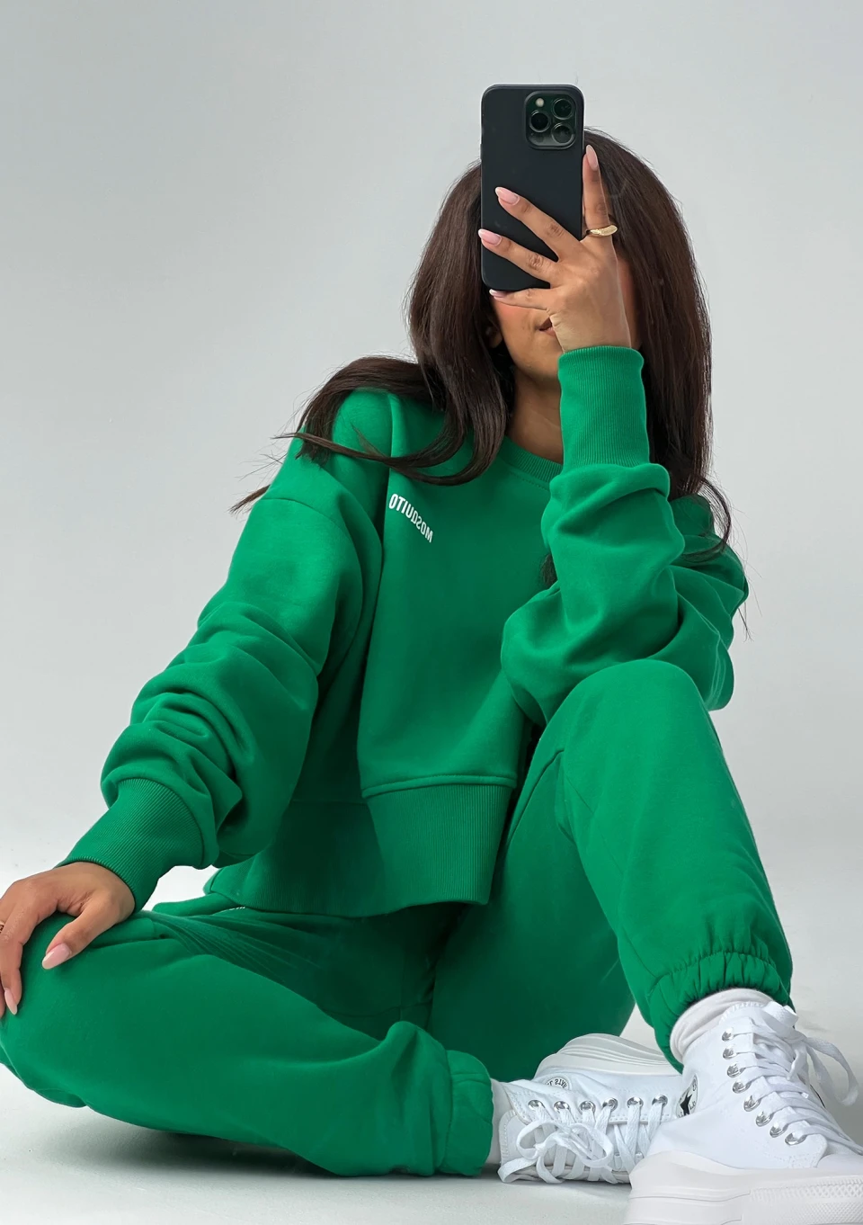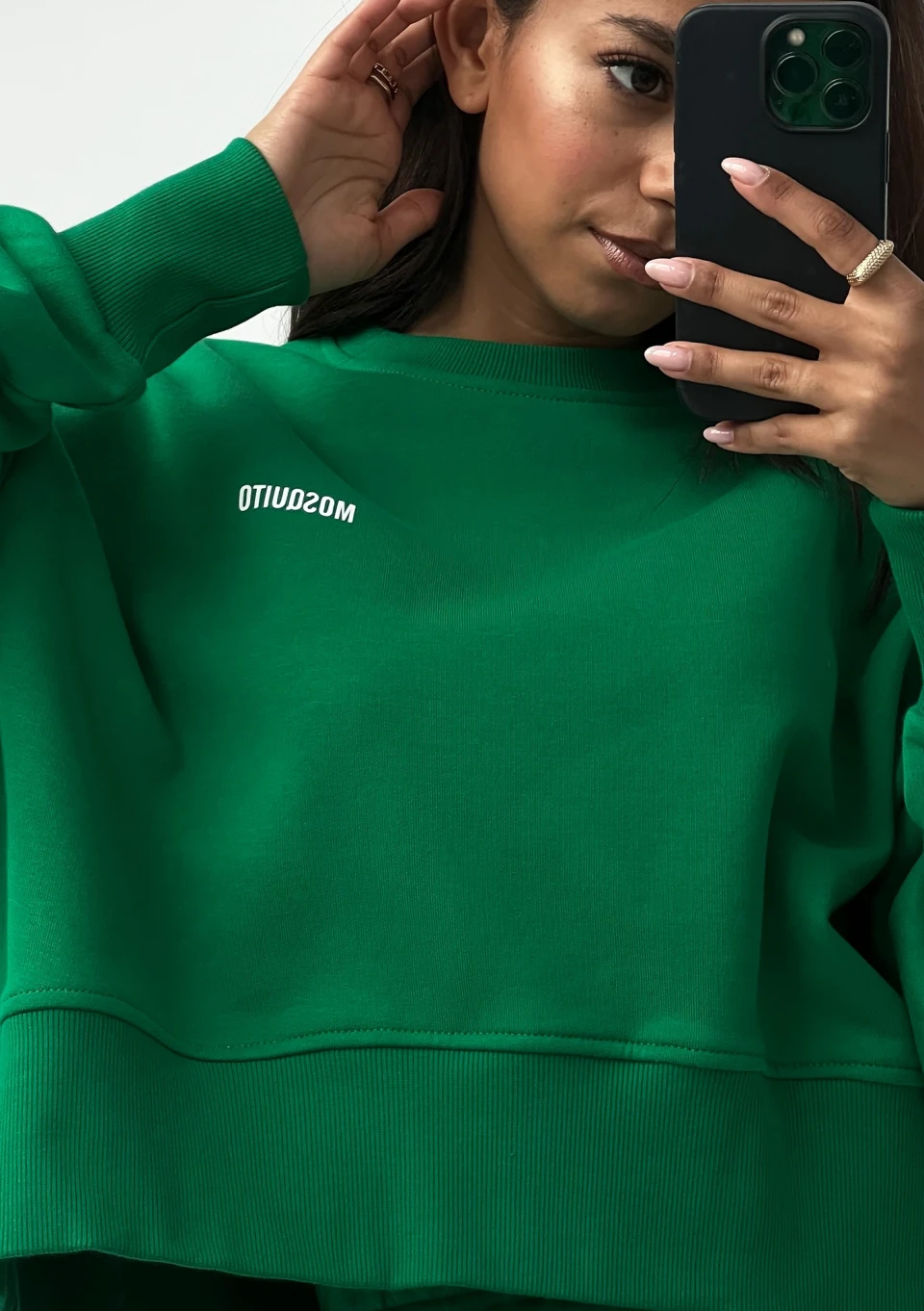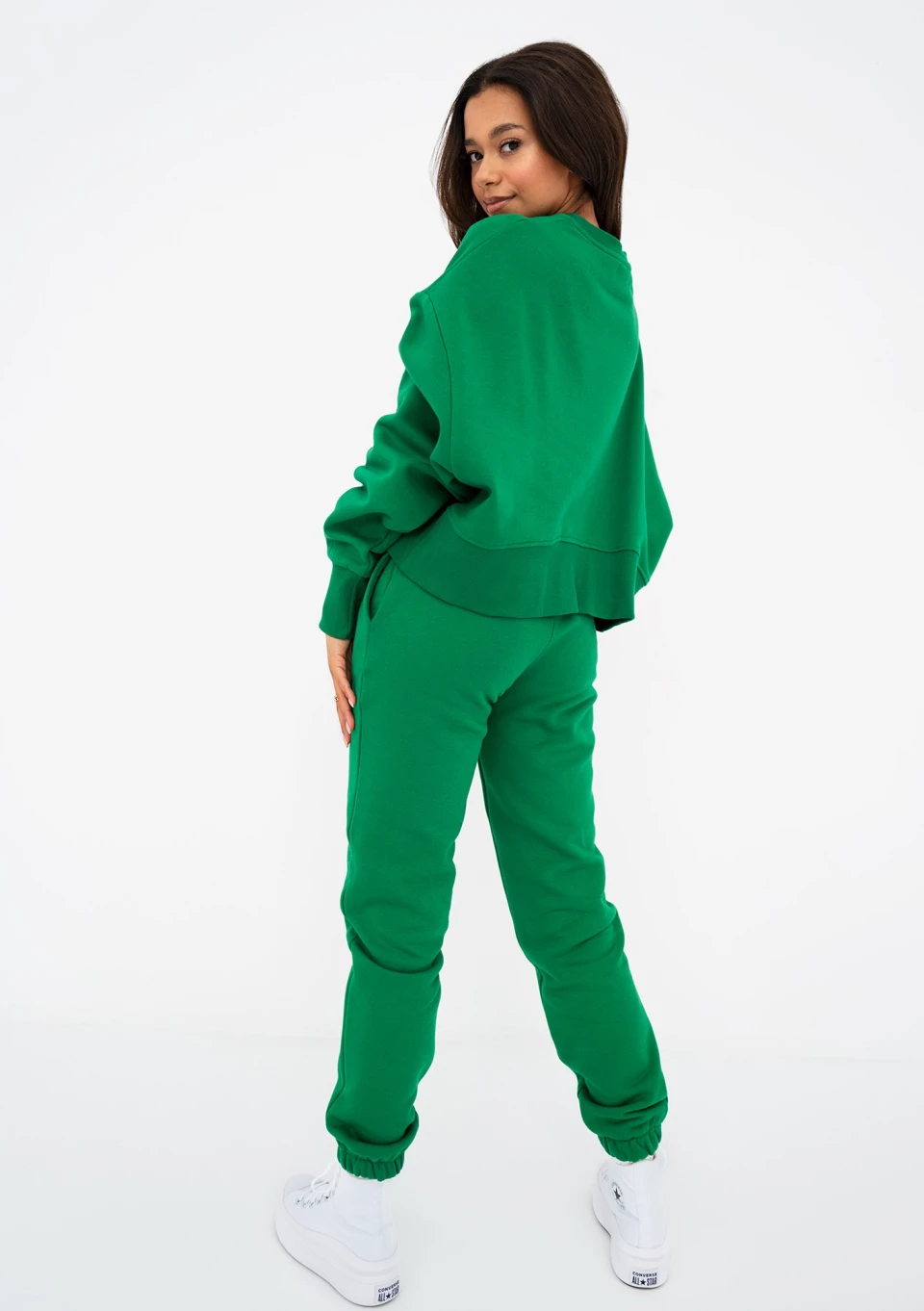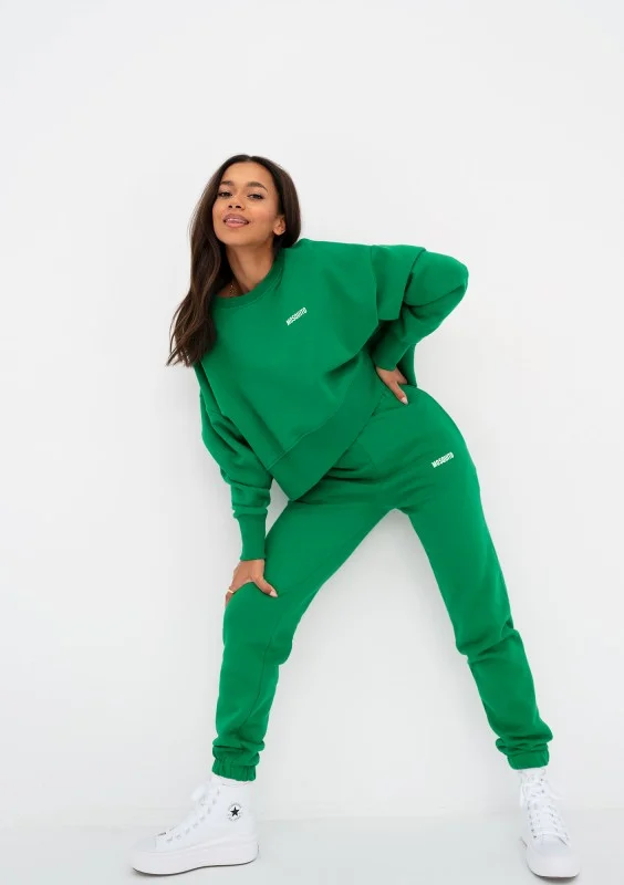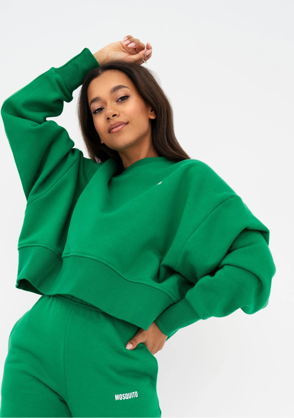 Modna bluza damska o swobodnym kroju oversize. Model w intensywnej zieleni, wykonany z dzianiny bawełnianej z miękkim meszkiem od spodu.