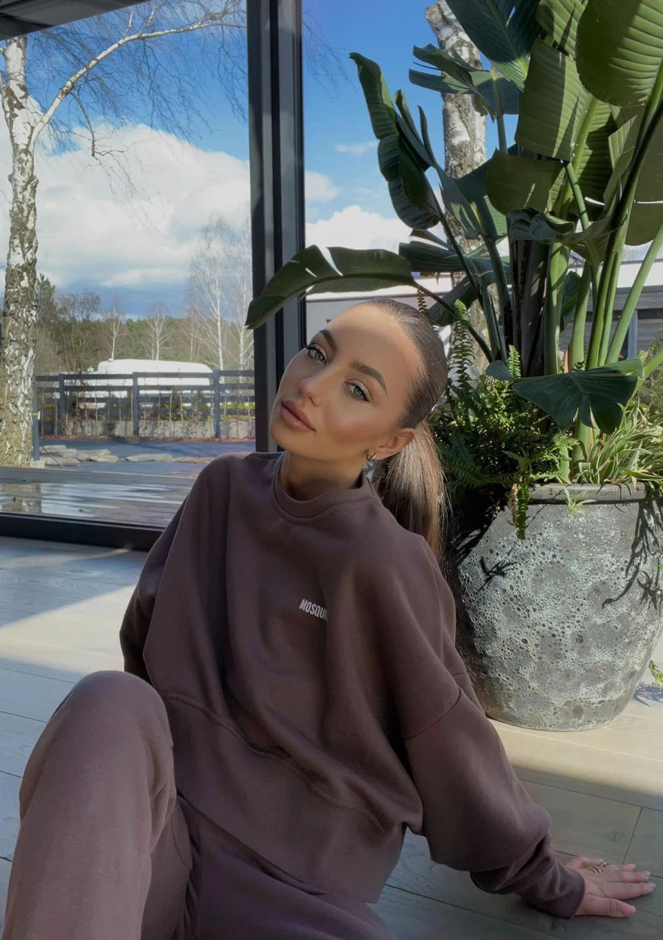 Stylowa bluza damska o swobodnym kroju oversize. Model brązowy, wykonany z dzianiny bawełnianej z miękkim meszkiem od spodu.
