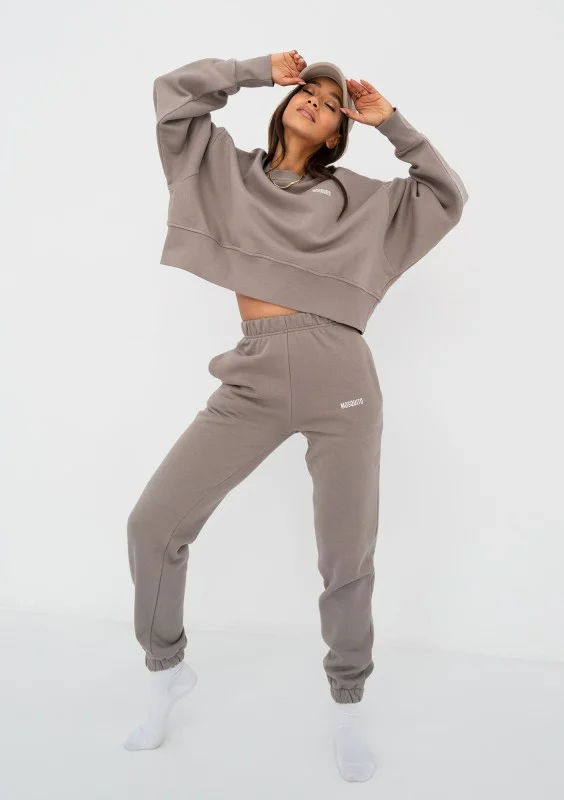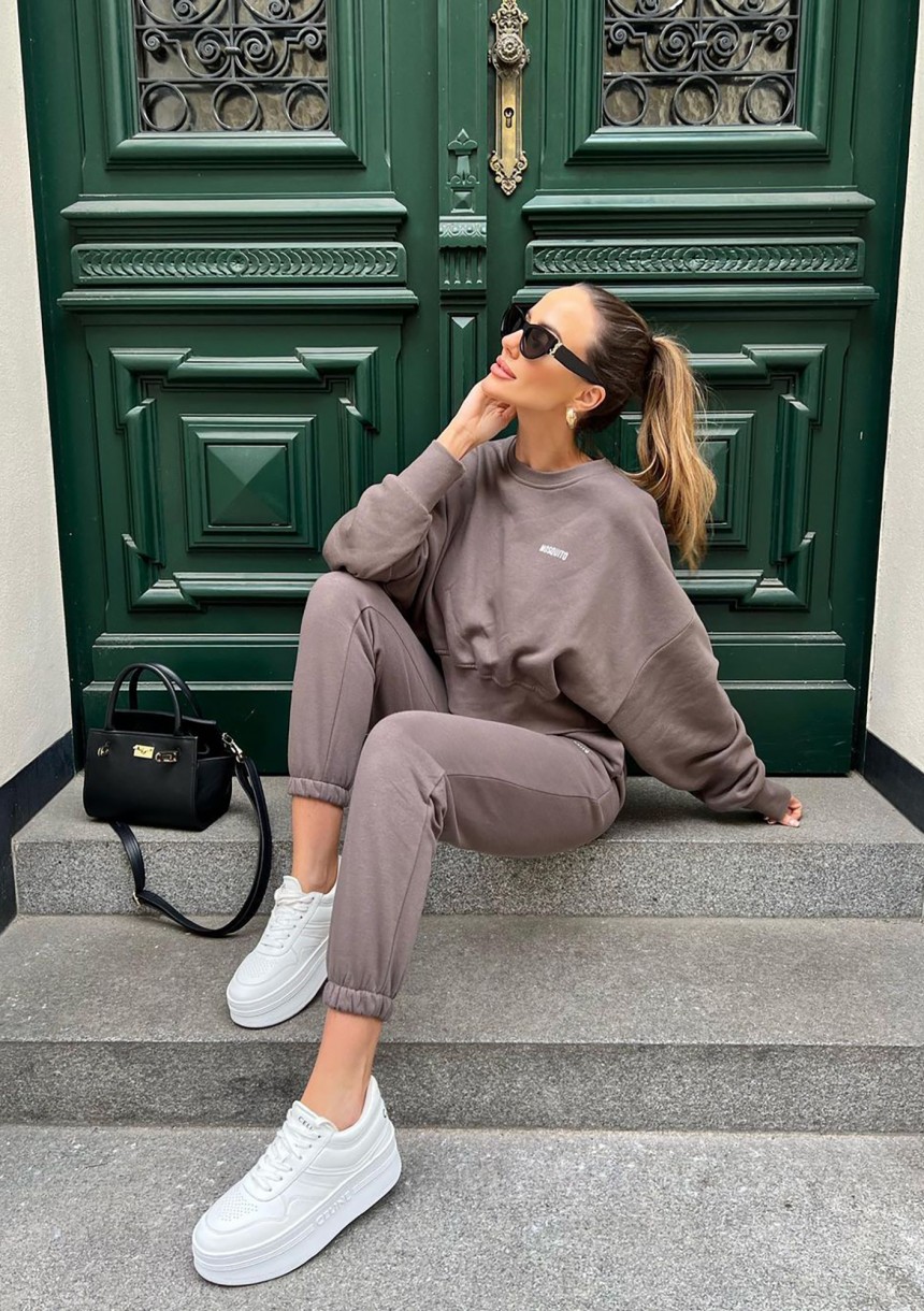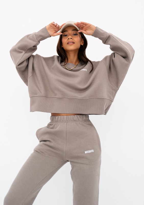 Stylowa bluza damska o swobodnym kroju oversize. Model w odcieniu taupe, wykonany z dzianiny bawełnianej z miękkim meszkiem od spodu.