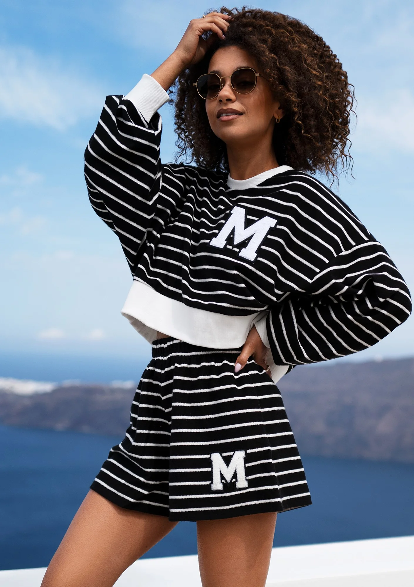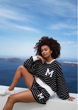 Jeśli kompletując wakacyjną walizkę w pierwszej kolejności kierujesz się wygodą, mamy dla Ciebie lekką, bawełnianą bluzę w bardzo ciemnym granacie, która z pewnością nie raz przyda się wieczorami lub lekko zachmurzone dni. To zaprojektowana w iście wakacyjnym stylu bluza damska w paski, stylowo ozdobiona symbolem naszej marki.