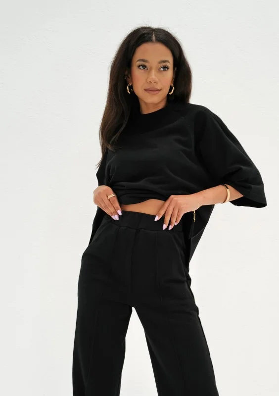 Melgo - Bluza dzianinowa z krótkim rękawem Czarna