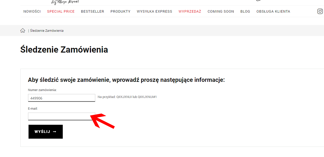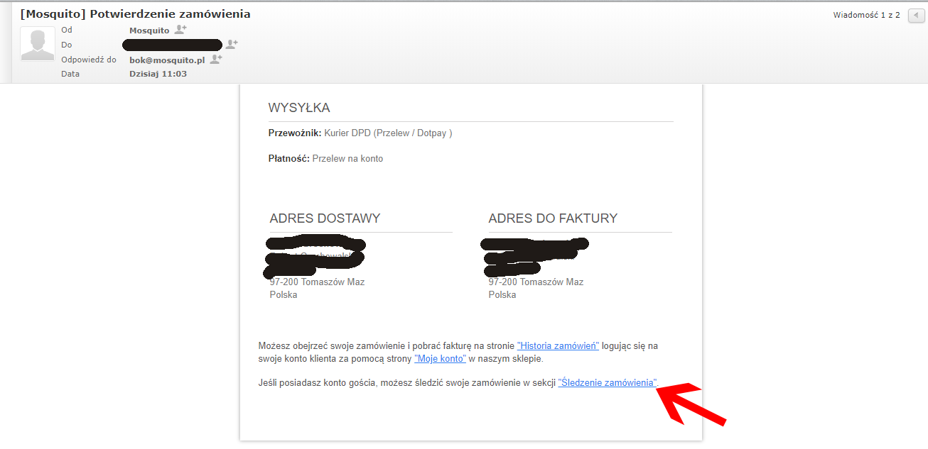 "Jeśli posiadasz konto gościa, możesz śledzić swoje zamówienie w sekcji "Śledzenie zamówienia".