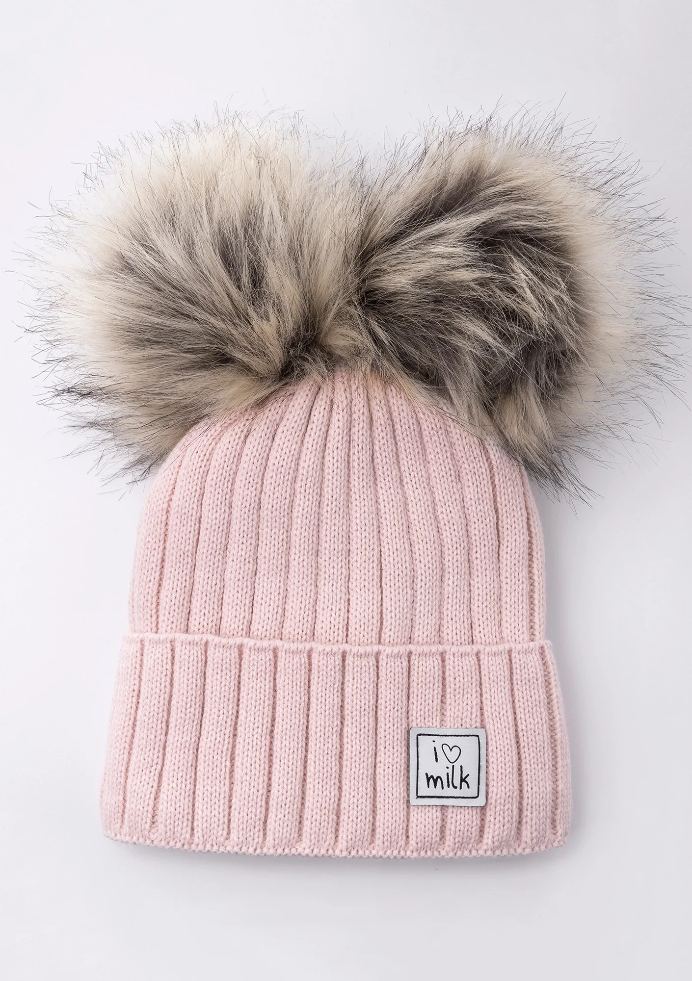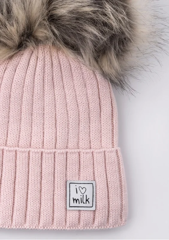 Zimowa czapka dziecięca z pomponami Pudrowy Róż