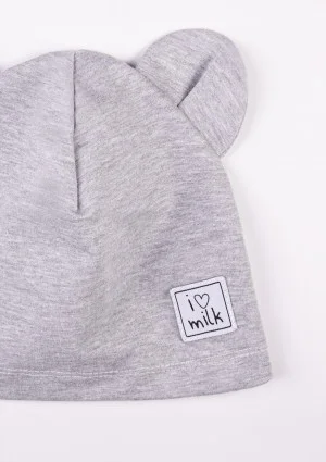 Czapka bawełniana dla dzieci o kroju beanie została słodko ozdobiona uszkami. Model jest prosty i minimalistyczny, dlatego będzie pasował do sportowych, jak i eleganckich ubiorów maluszków. To fason dla najmłodszych dzieci w wieku niemowlęcym, do trzech lat. W tym czasie posłuży przez wiele pór i sezonów. Egzemplarz w szarym kolorze jest odpowiedni zarówno dla chłopców, jak i dla dziewczynek. Nasze bawełniane czapki niemowlęce beanie proponujemy jednak w różnych odcieniach. Każda z nich jest zdobiona naszywką z logotypem sklepu.