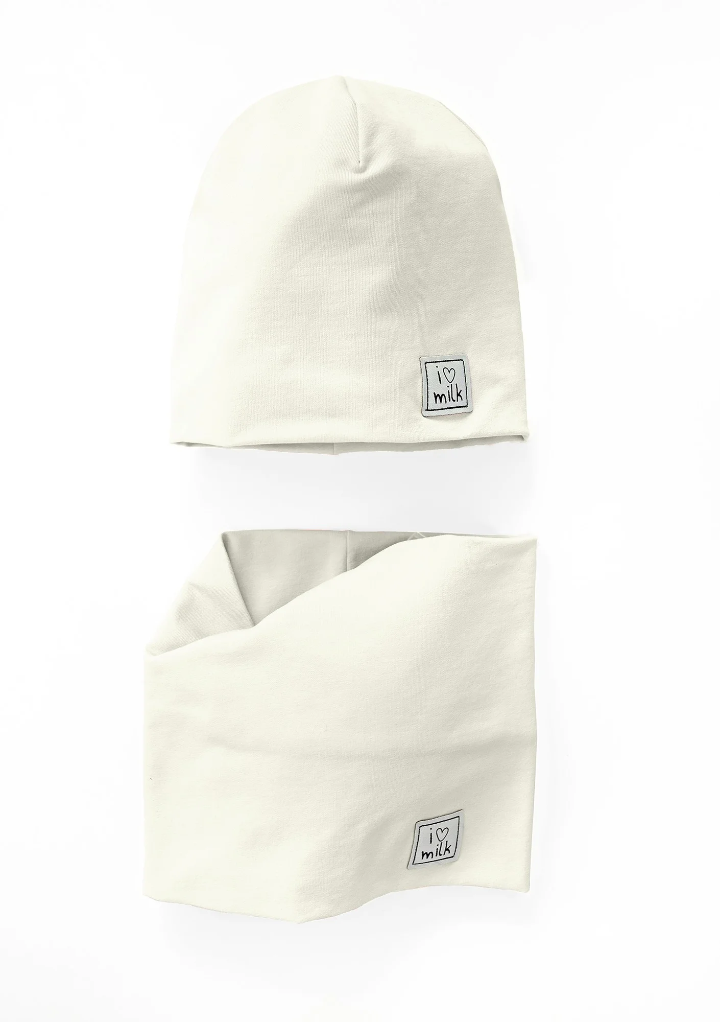 Bawełniana czapka dziecięca i komin zostały uszyte z miękkiej dzianiny dresowej. Elementy zestawu są wykonane w odcieniu ecru, który stanowi delikatną i uniwersalną kolorystykę pasującą do wszystkich ubranek - bez wyjątku. Z kompletu ucieszą się zarówno dziewczynki, jak i chłopcy. Produkty są z elastycznego materiału, toteż zapewnią dzieciom wygodne ułożenie i dopasowanie do głowy i szyi. Dzianina jest lekka, posiada pętelkową, a więc delikatnie przewiewną fakturę. Z tego względu ubranka najlepiej sprawdzą się wczesną wiosną, jesienią, a nawet w chłodne wieczory letnie. Z czapki i komina Twój maluch skorzysta nawet na wakacjach, w miejscach wietrznych, takich jak plaża, molo czy góry. Wysoka jakość pozwala na codzienne użytkowanie i częstą pielęgnację. Produkty są możliwe wyłącznie do zakupu w zestawie. To wyroby rodzimej marki, wykonane lokalnie, w Polsce.