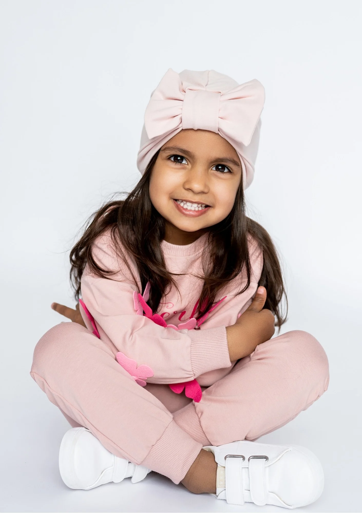 Czapka dziecięca turban z kokardą Pudrowy Róż