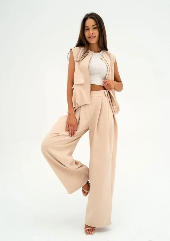 Ta beżowa kamizelka damska to idealny dodatek na wiosenne dni. Jej lekkie, bombkowe podszycie dołu nadaje jej subtelnej oryginalności i dziewczęcego uroku. Znakomicie sprawdzi się na co dzień, zarzucona na ulubiony T-shirt czy bluzkę z długim rękawem, dodając swobodnego, ale stylowego charakteru Twoim codziennym outfitom. W casualowych stylizacjach możesz zestawić ją z jeansami, chinosami, a nawet lekką spódnicą, tworząc wygodny i modny look na spotkania z przyjaciółmi, weekendowe wyjścia czy zakupy. Jej neutralny beżowy kolor sprawia, że z łatwością dopasujesz ją do wielu elementów garderoby, czyniąc ją niezwykle uniwersalną narzutką.