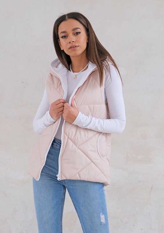 Ezzy - Krótki bezrękawnik damski Beżowy
