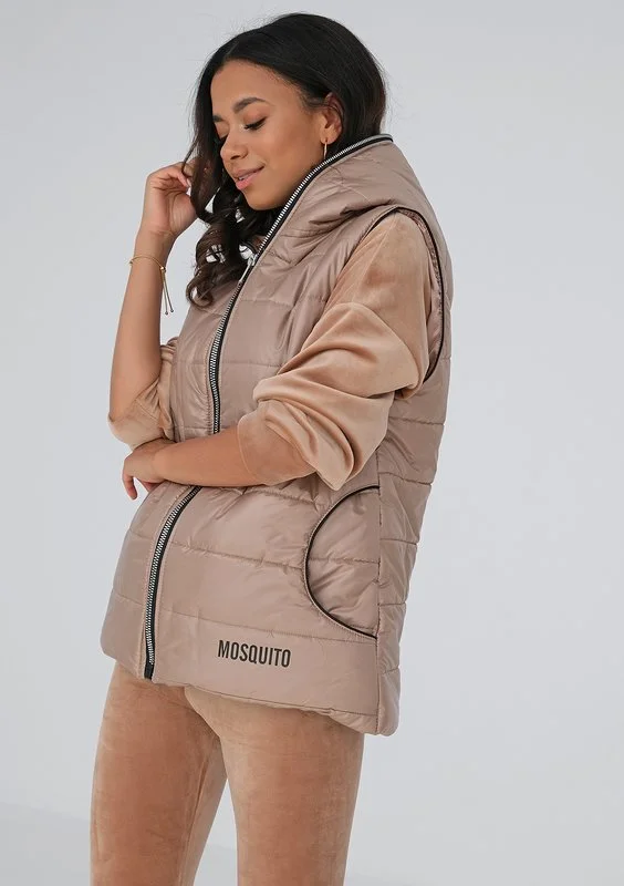 Vicky - Pikowany bezrękawnik logo Nude Beige