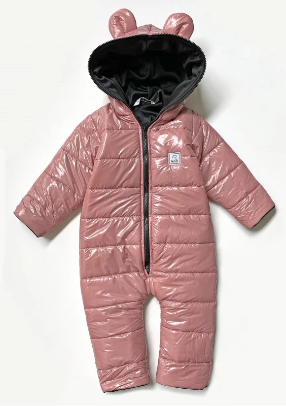 Kombinezon zimowy dziecięcy z uszami Pudrowy