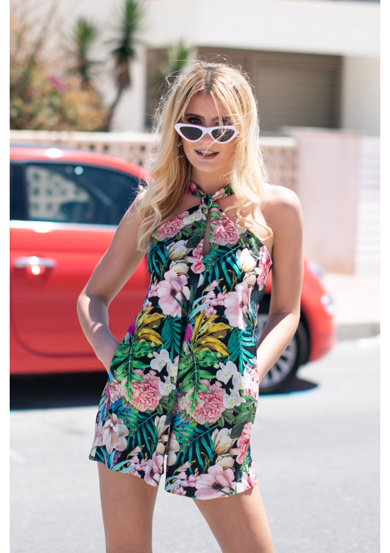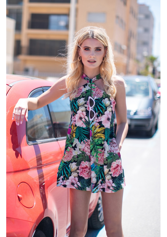 KOMBINEZON Z SZORTAMI W KWIATY
