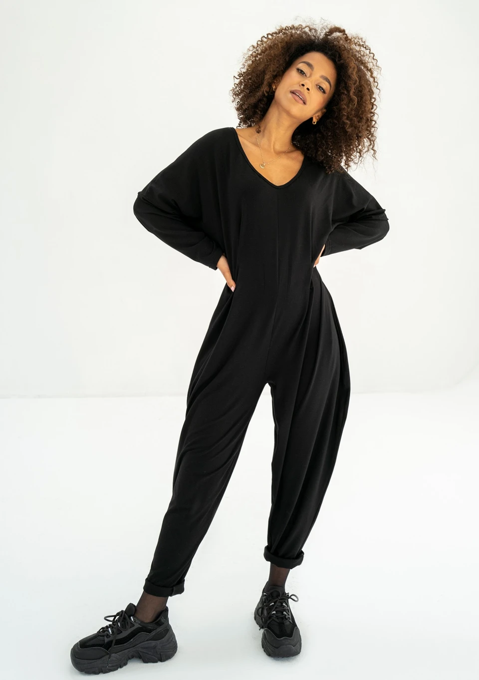 Tansy - Luźny kombinezon z dzianiny Czarny