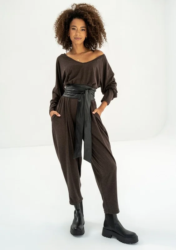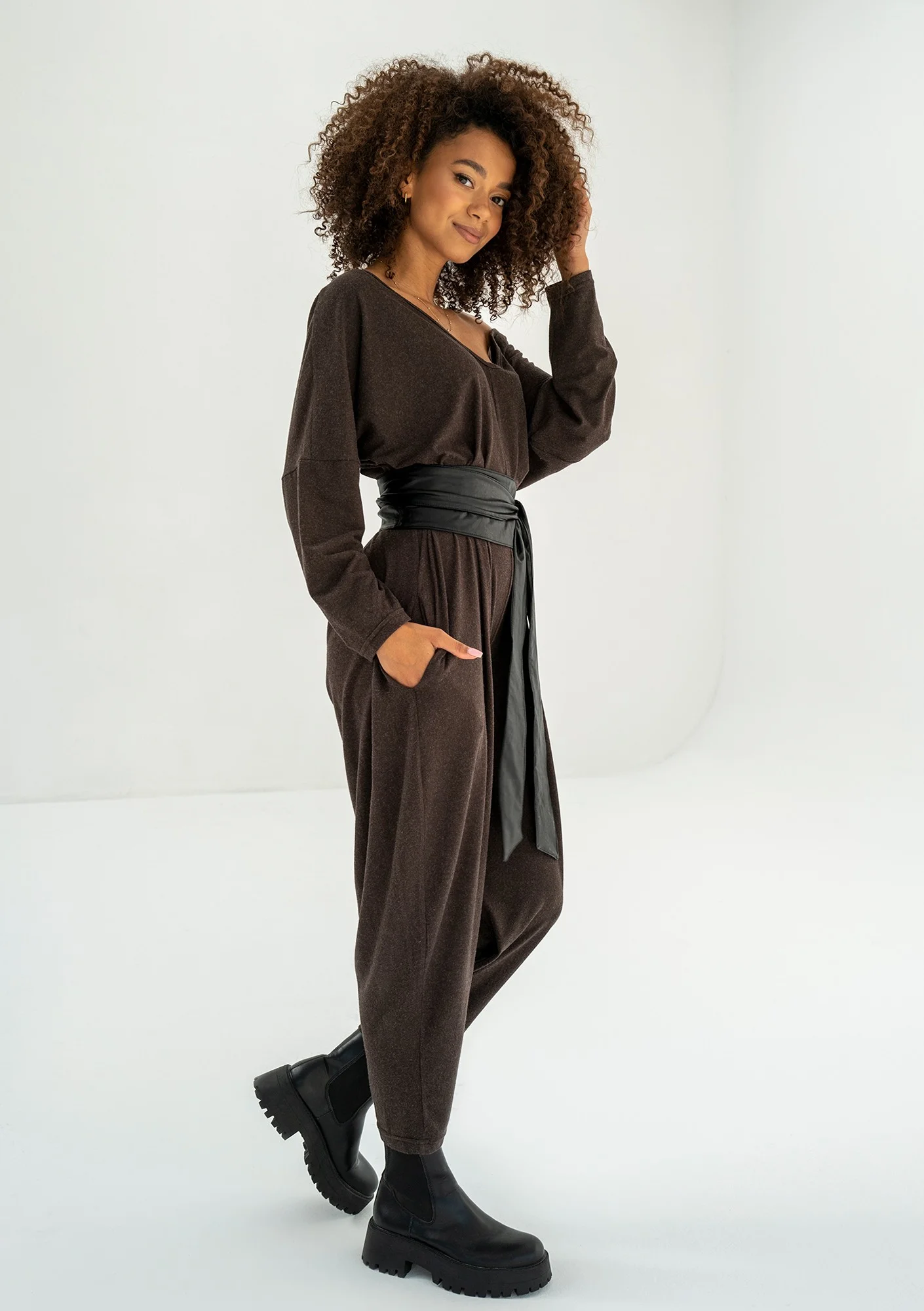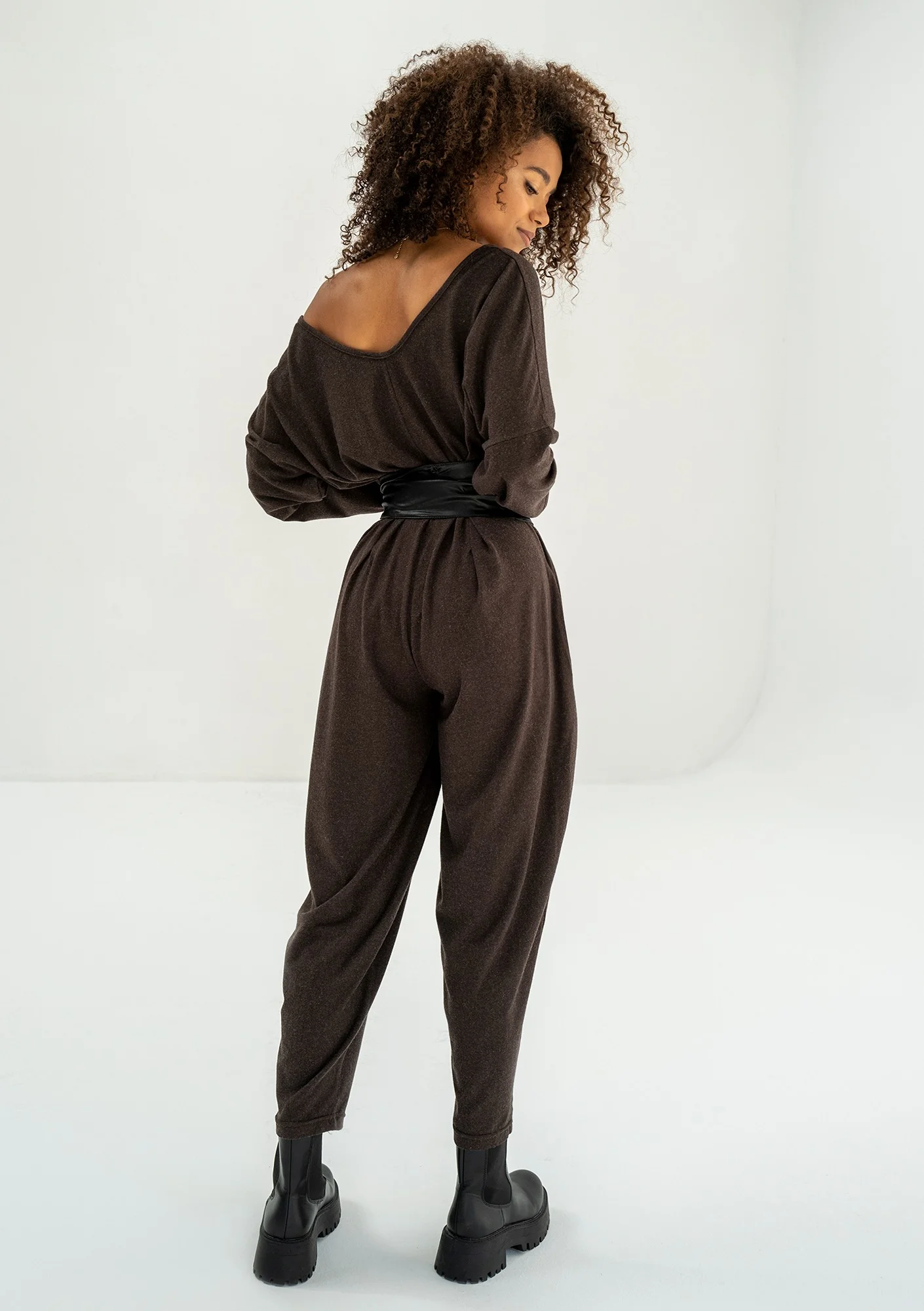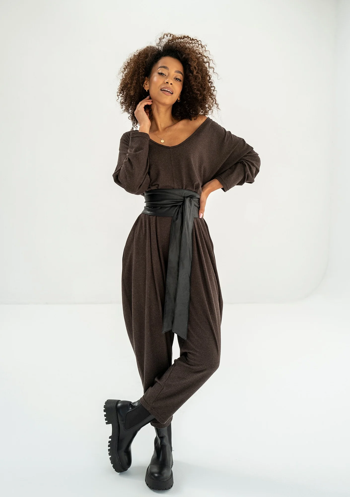 Tansy - Luźny kombinezon z dzianiny Brązowy