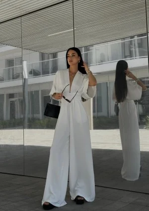 Kombinezony damskie co roku powracają do łask, a na Mosquito oczarują Cię co rusz całkiem nowe, designerskie modele. Vamos to esencja lata zamknięta w przepięknej i wygodnie zwiewnej formie. Biały kombinezon rewelacyjnie układa się na sylwetce, tuszując jej mankamenty dzięki modnym, luźnym nogawkom i rękawkom. Śmiało skrojony dekolt sięga talii, całość zachowuje dobry smak i elegancki styl. Kombinezon odkrywa plecy efektownym wycięciem. Model dostępny jest także w innych kolorach.