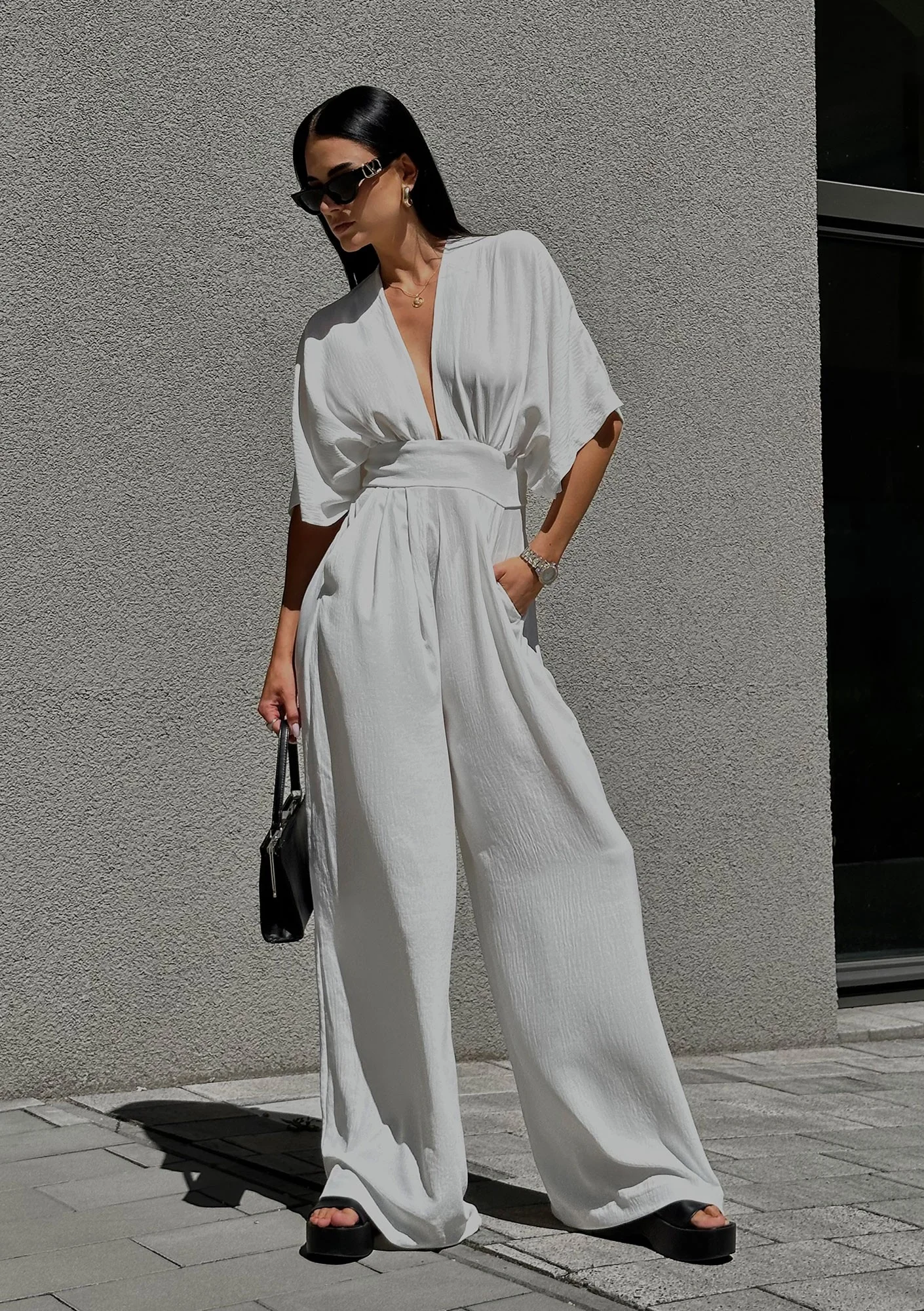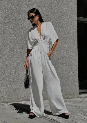 Vamos - Zwiewny kombinezon letni Biały
