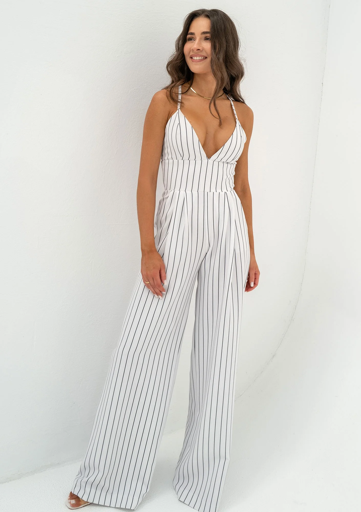 Nasz modny kombinezon damski na ramiączkach, wykonany z tkaniny w prążki, to wszechstronny element garderoby, który sprawdzi się na różnorodne okazje. Może być noszony na spotkania towarzyskie - lunch z przyjaciółmi, spotkanie przy kawie czy wieczorne wyjście do restauracji. To także doskonały wybór na drobne przyjęcia, spotkania rodzinne, letnie wyjścia, wakacje.
