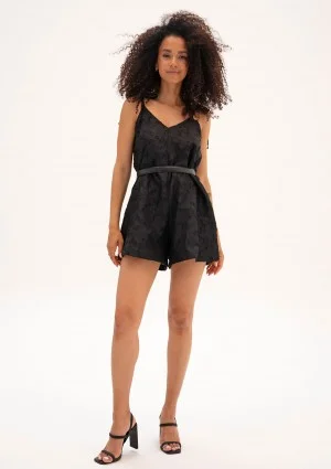 Fleur - Lekki romantyczny kombinezon z ażurowej bawełny Czarny