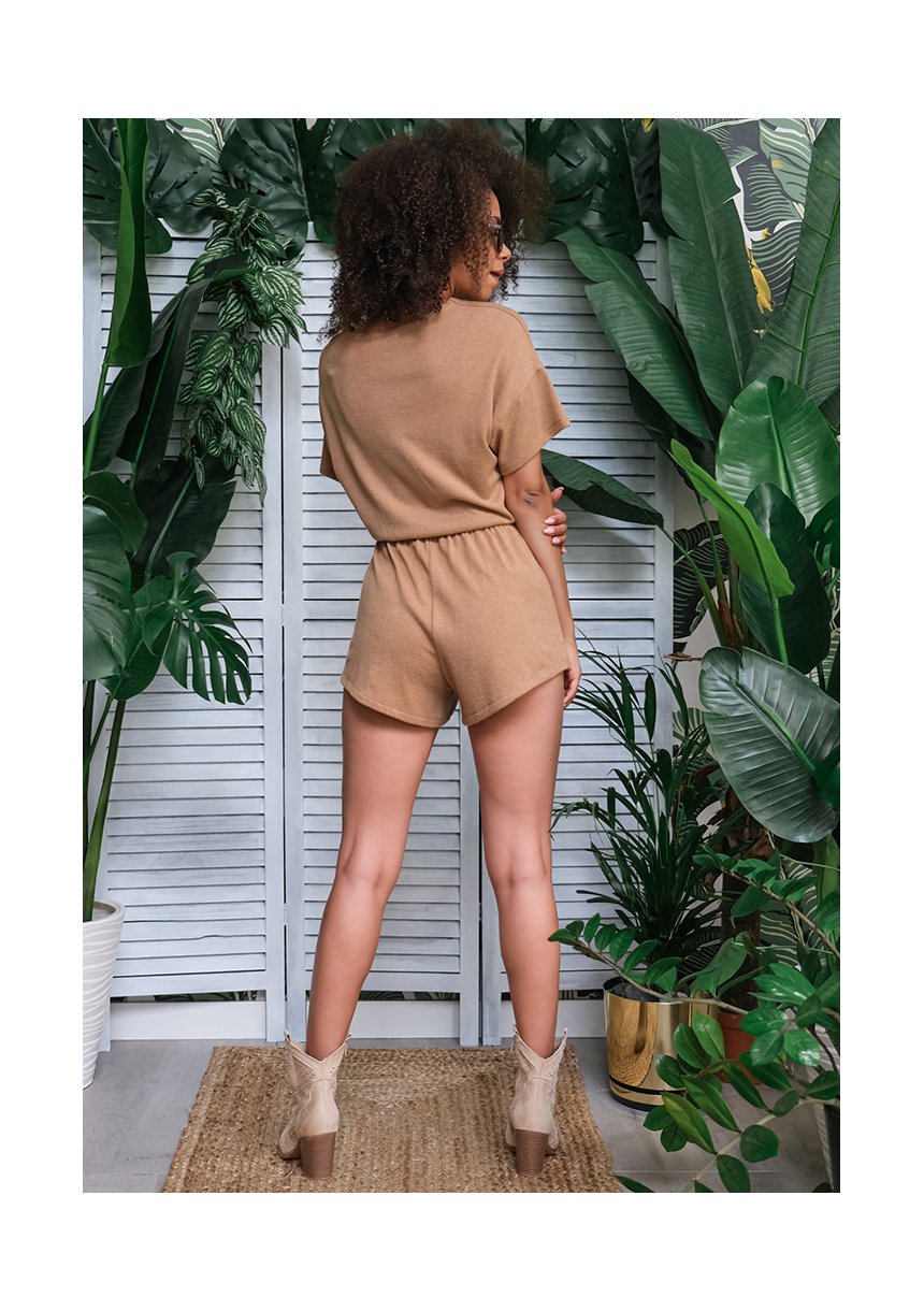 Lumi Wrap - Letni kopertowy kombinezon mini Beżowy