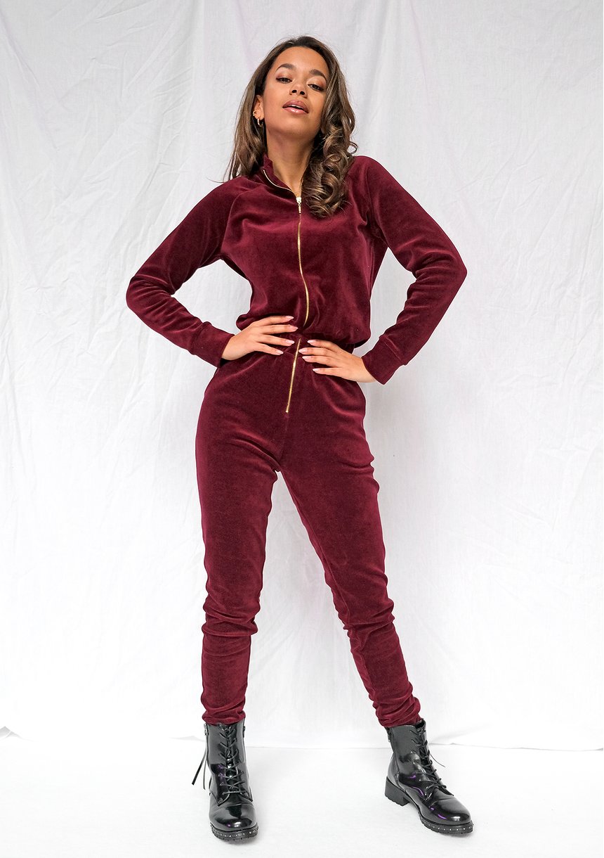 Kombinezon velvet Bordowy