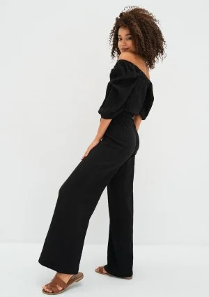 Velano - Kombinezon z teksturowanej tkaniny Czarny