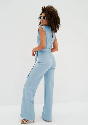 Linde - Elegancki kombinezon z paskiem Błękitny