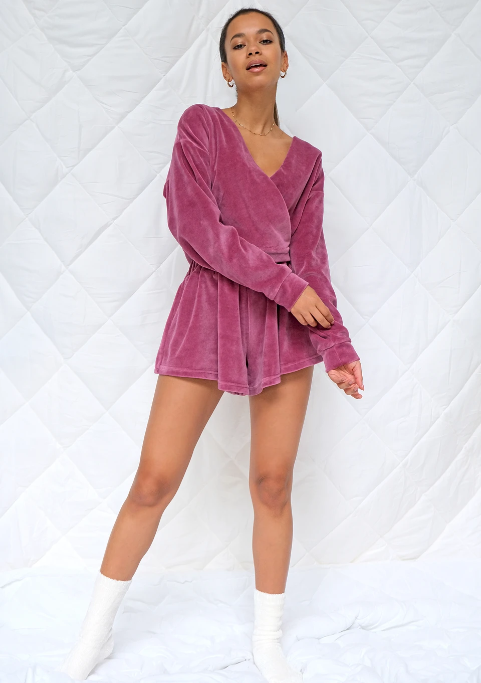 Welurowy komplet do spania Bordo