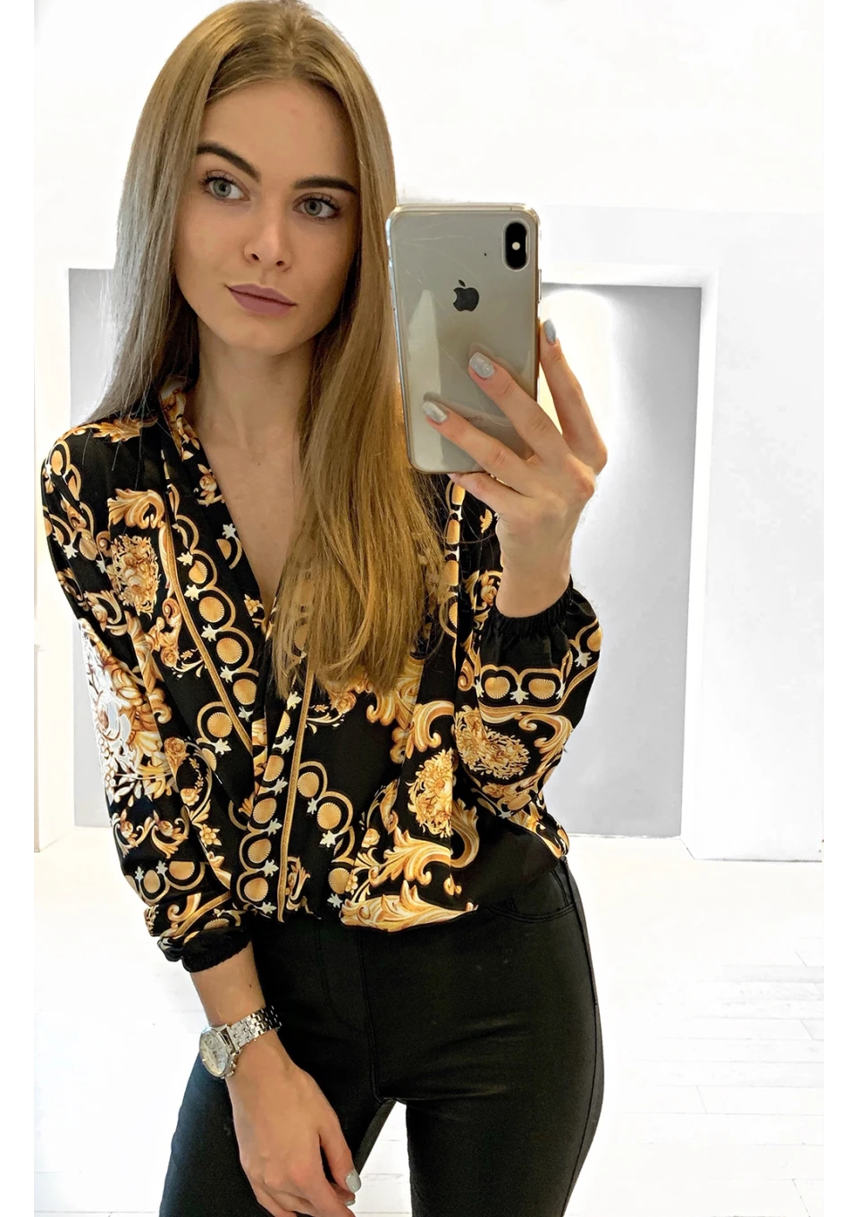 KOPERTOWA BLUZKA Z SATYNY GOLD ORNAMENT