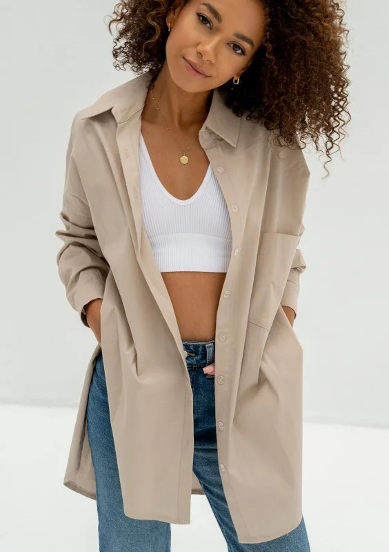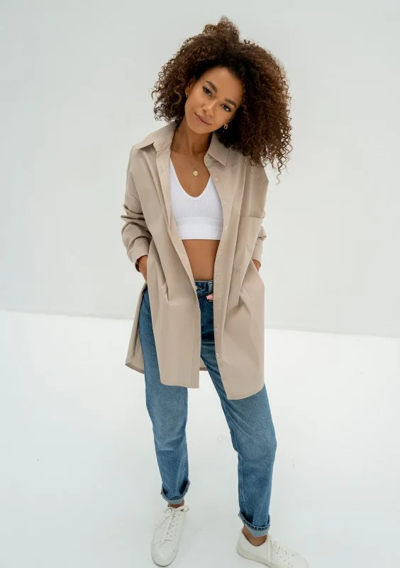 Viral - Koszula damska z bawełny oversize Beżowa