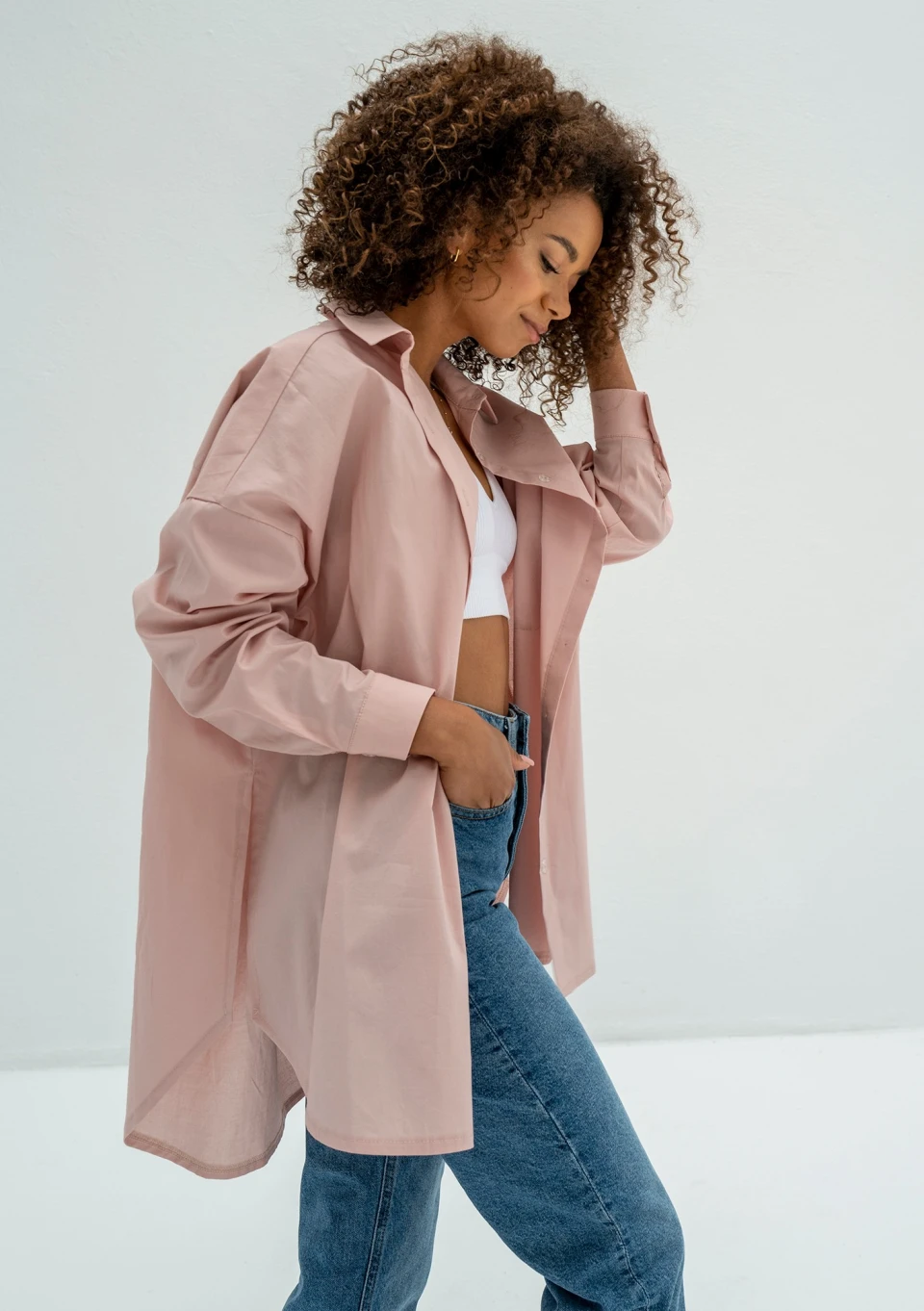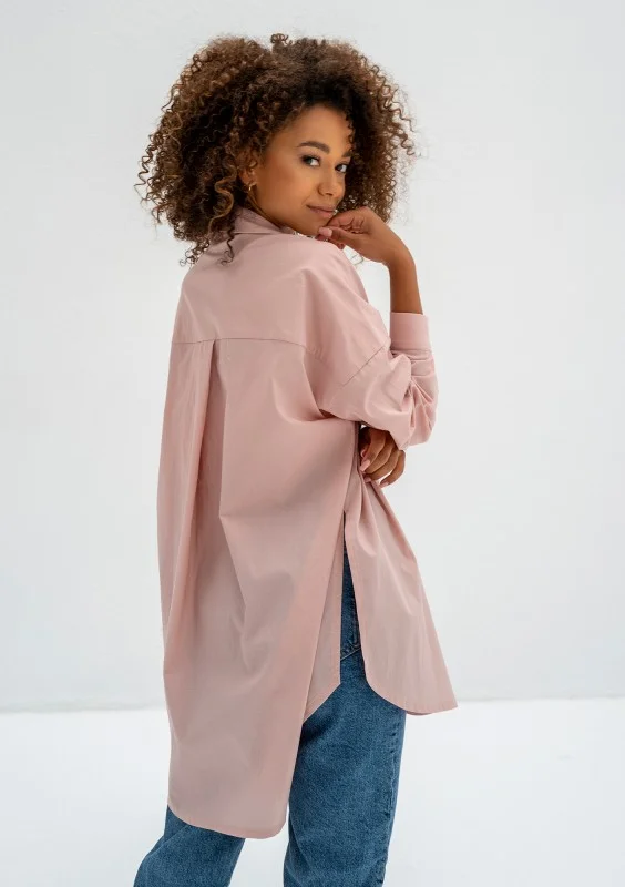 Viral - Koszula damska z bawełny oversize Pudrowa