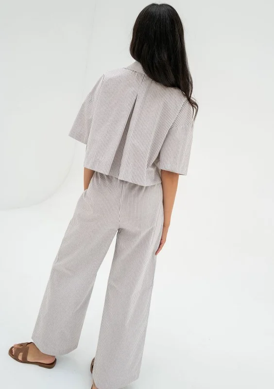 Jacque - Koszula crop z bawełny w prążki Beżowa