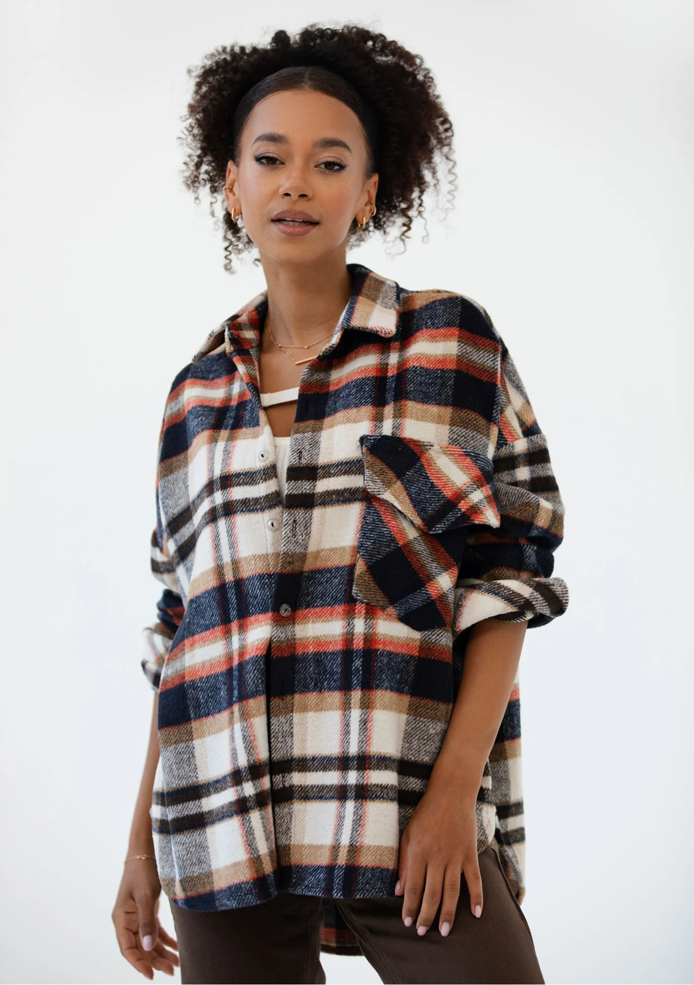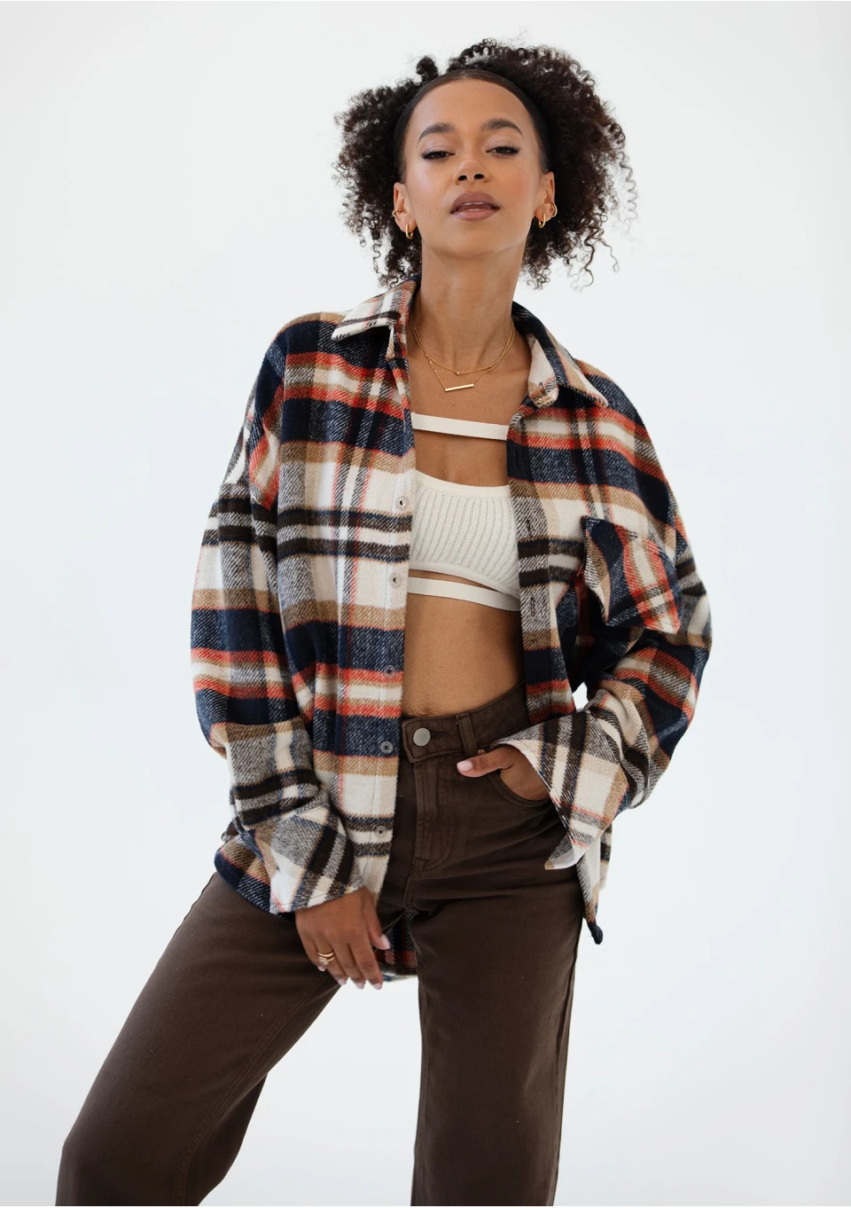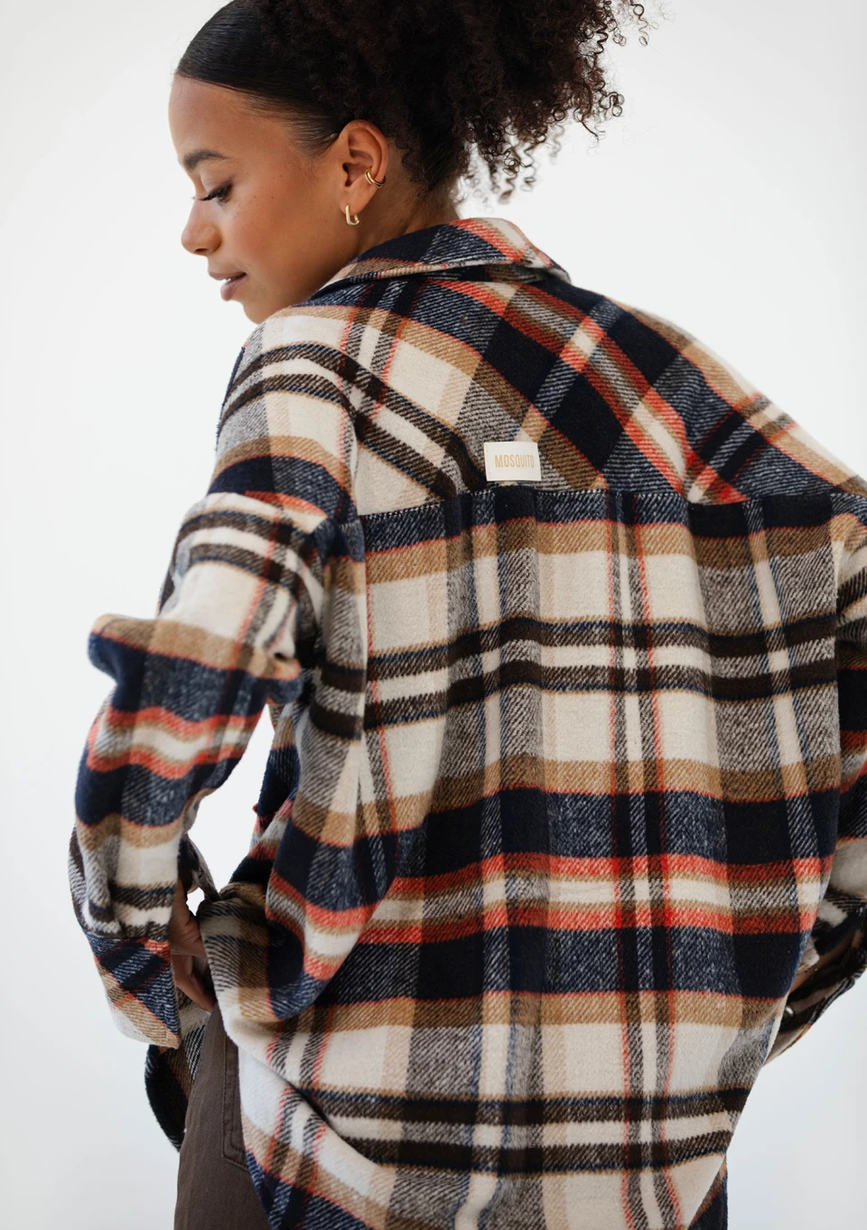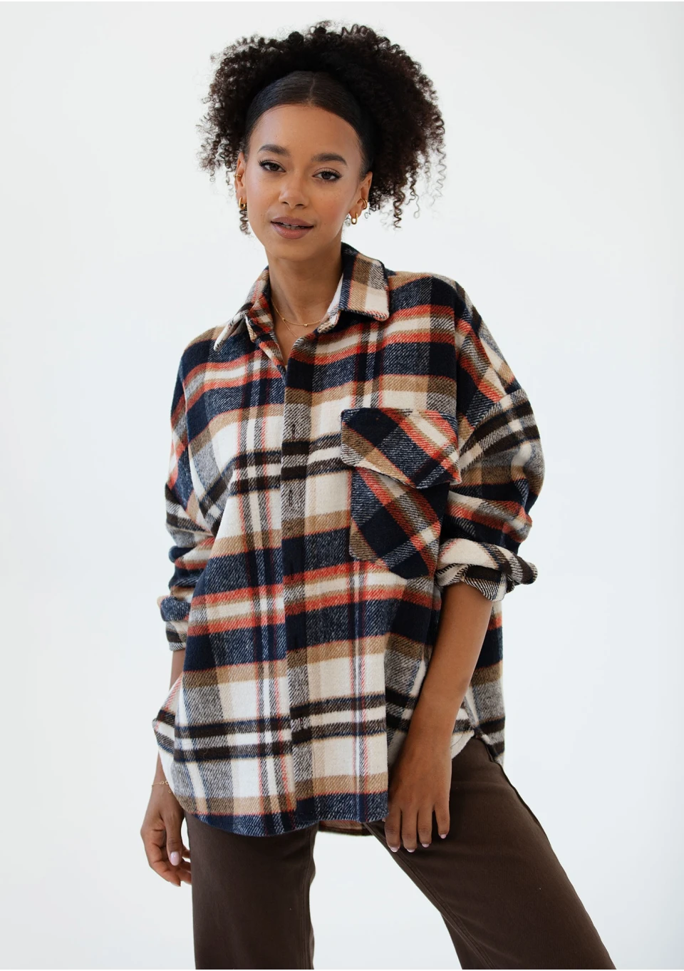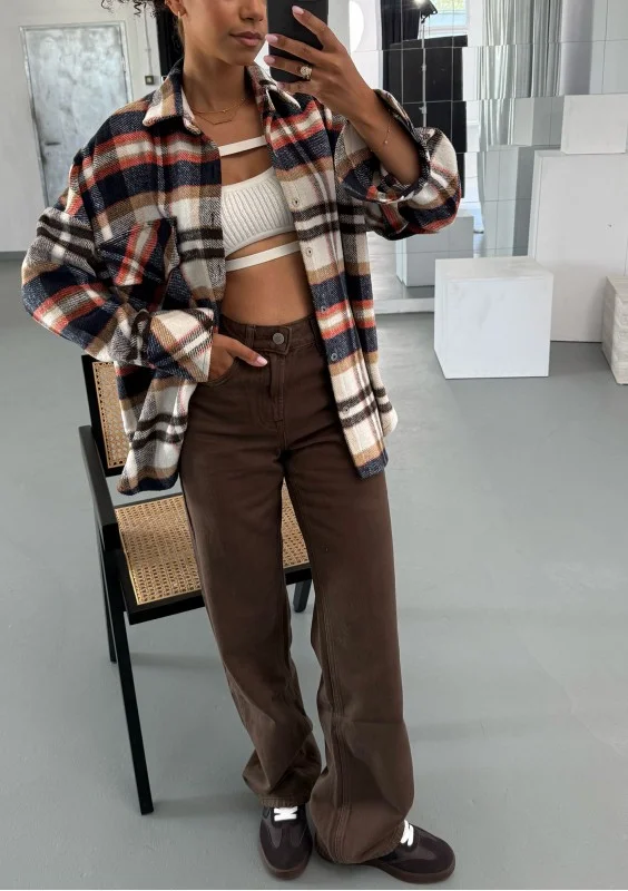 Shay - Koszula oversize z miękkiej flaneli w kratę Rust Navy