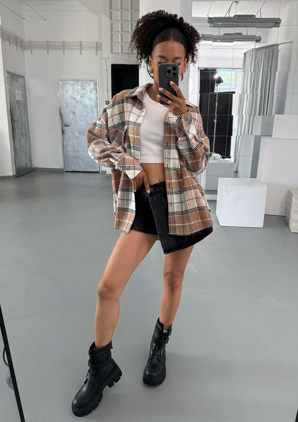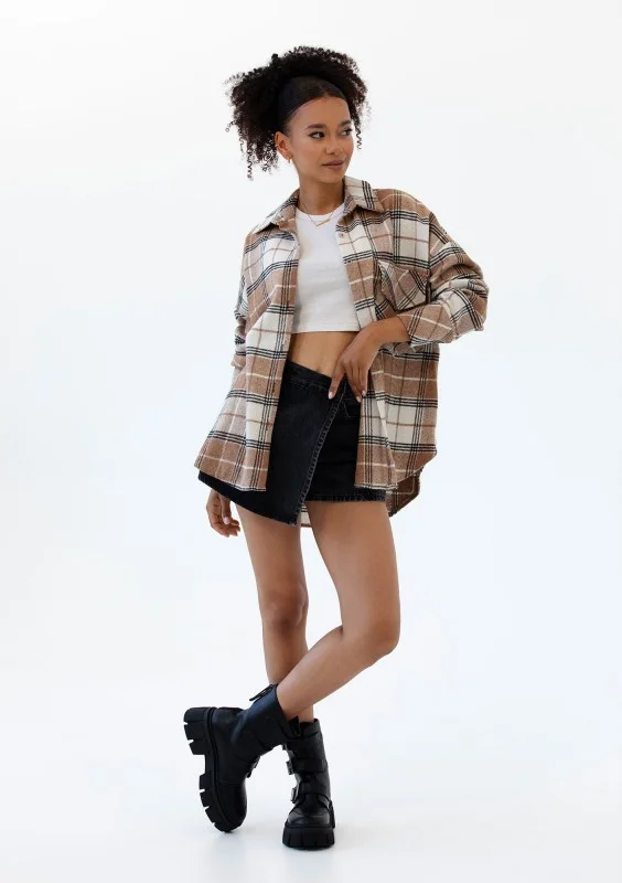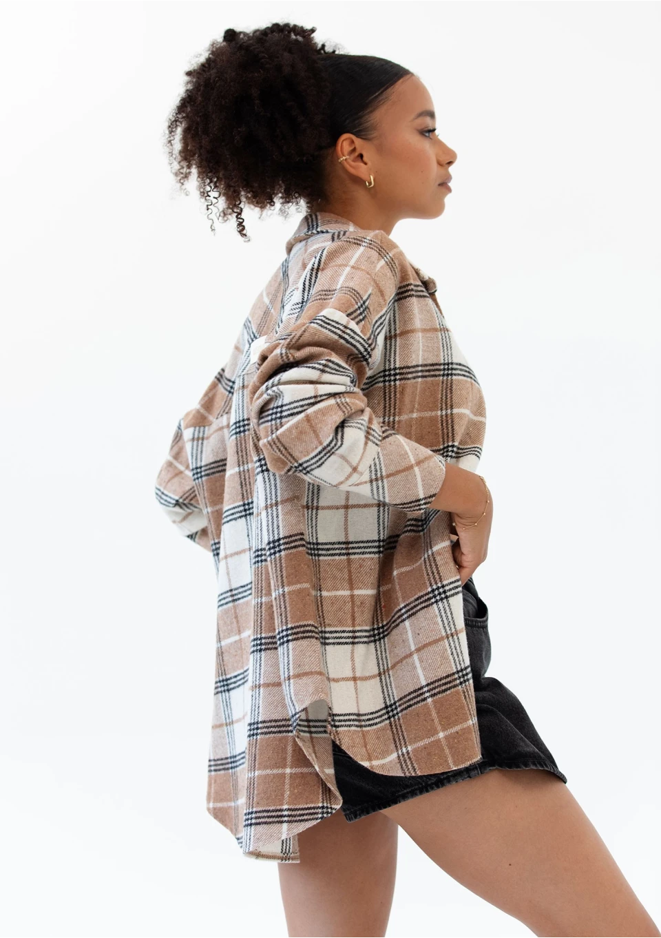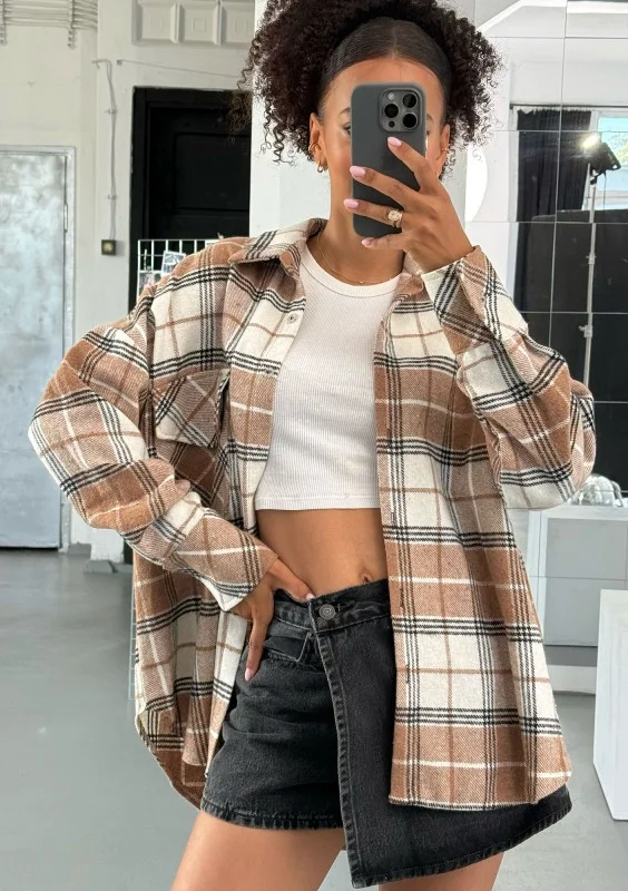 Shay - Koszula oversize z miękkiej flaneli w kratę Oat Caramel