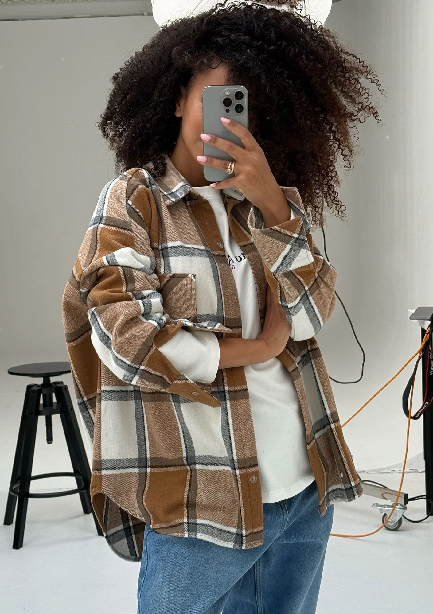 Shay - Koszula oversize z miękkiej flaneli w kratę Toffee Check