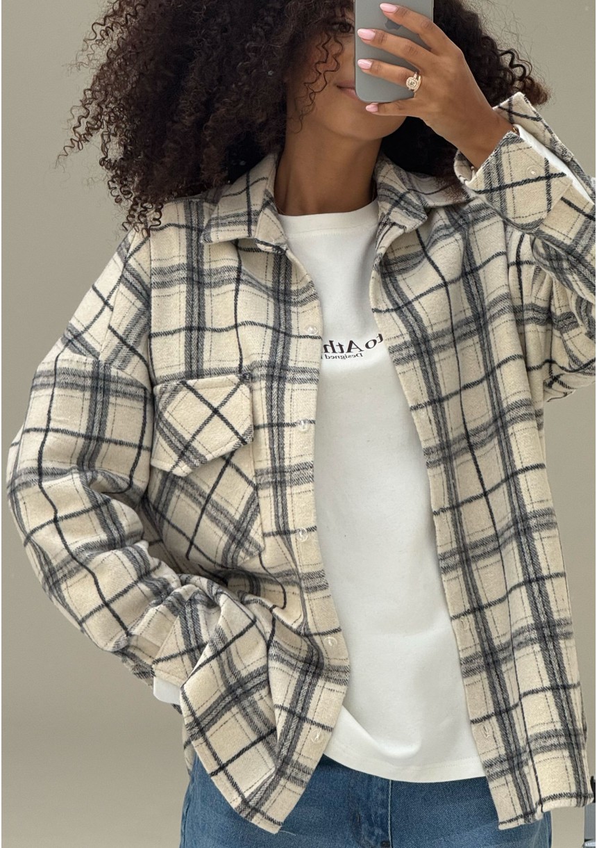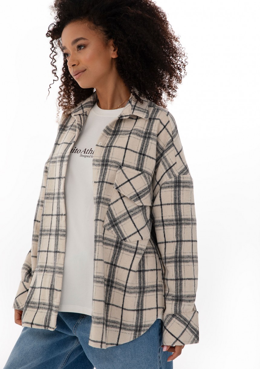 Shay - Koszula oversize z miękkiej flaneli w kratę Vanilla Ink