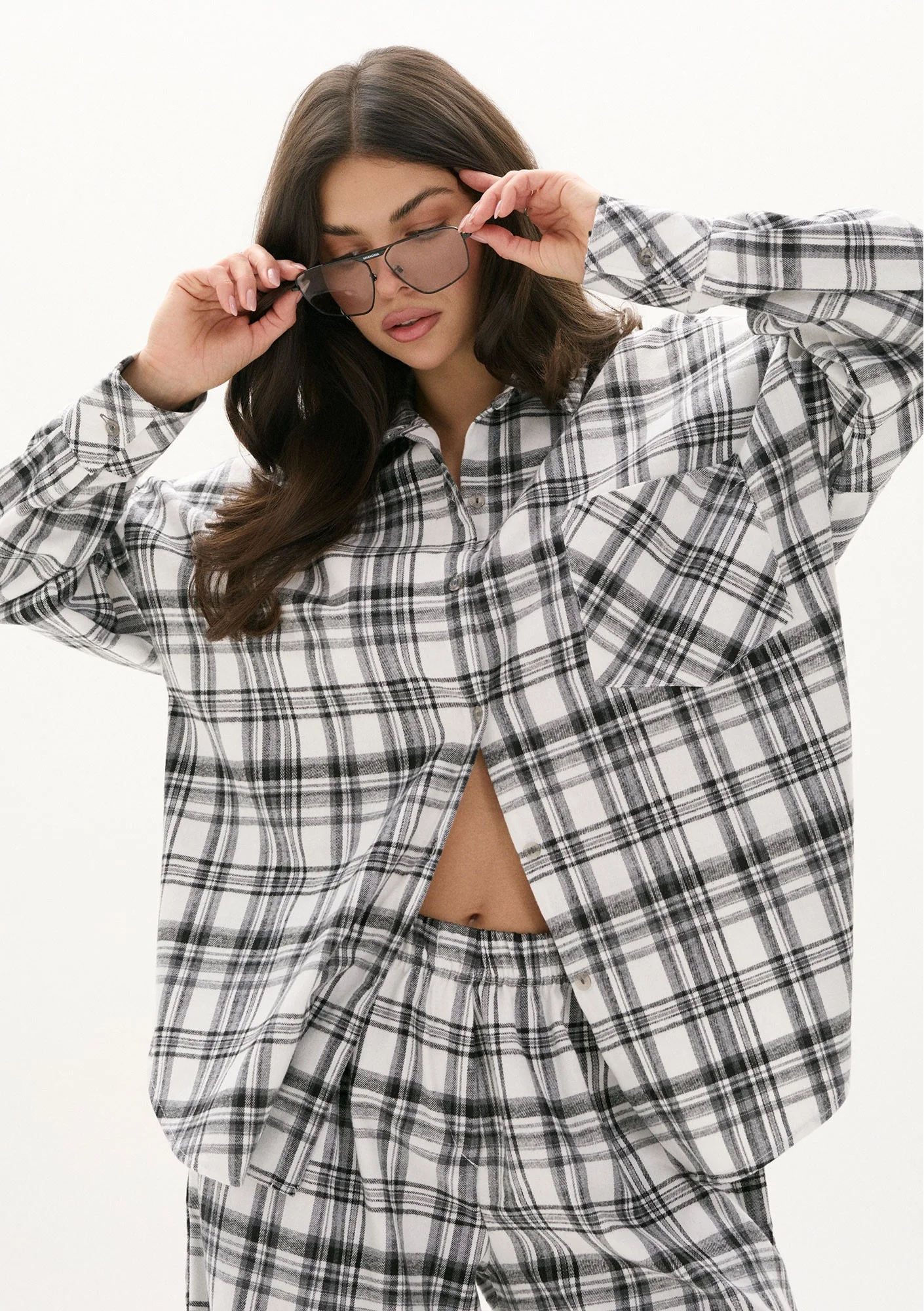 Duty - Koszula oversize z miękkiej flaneli w kratę Black and White