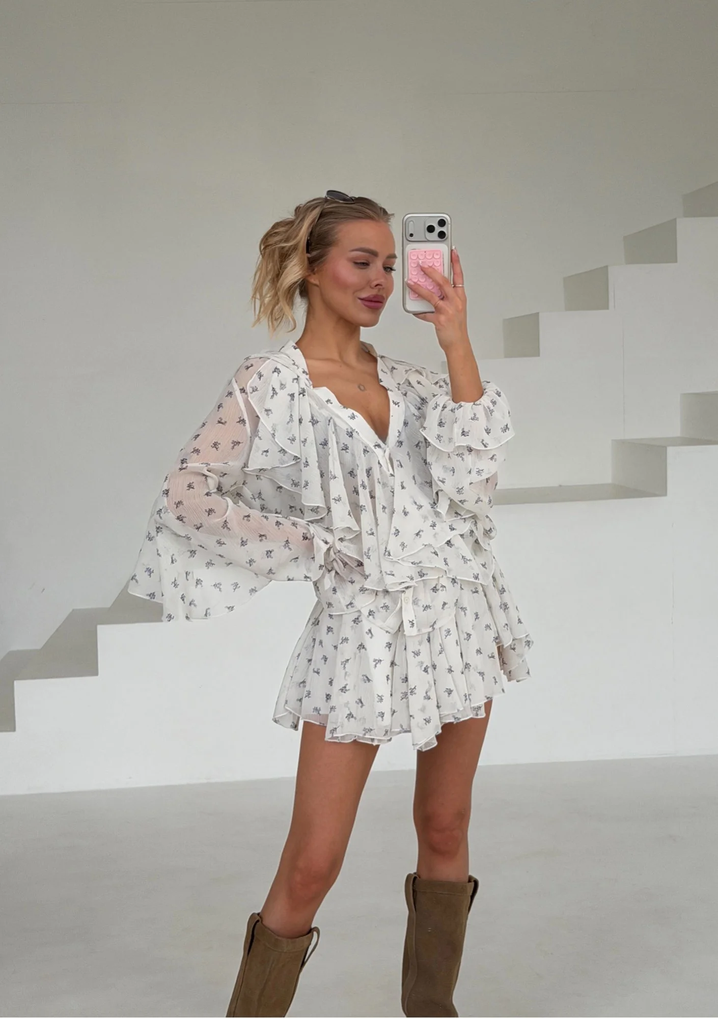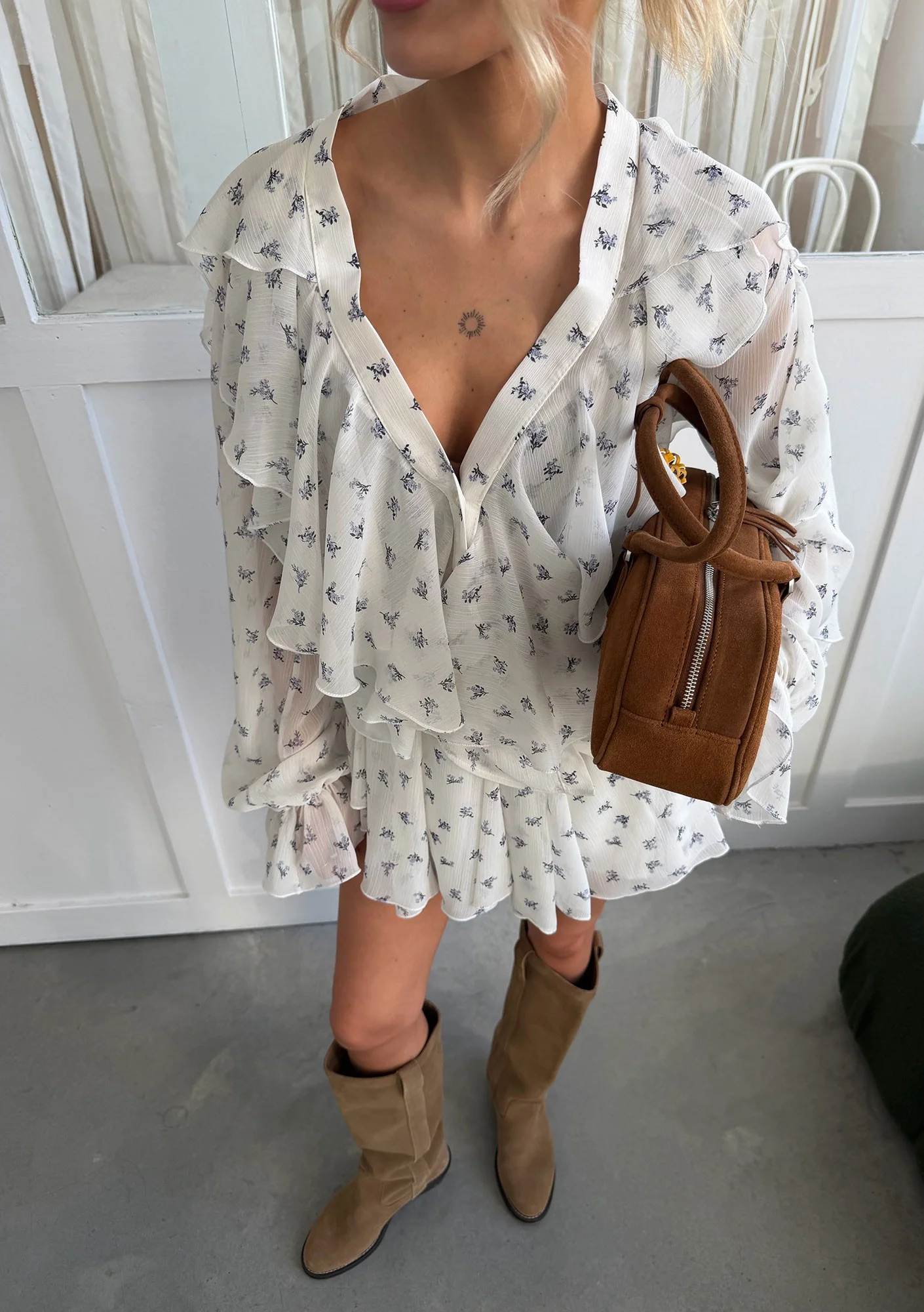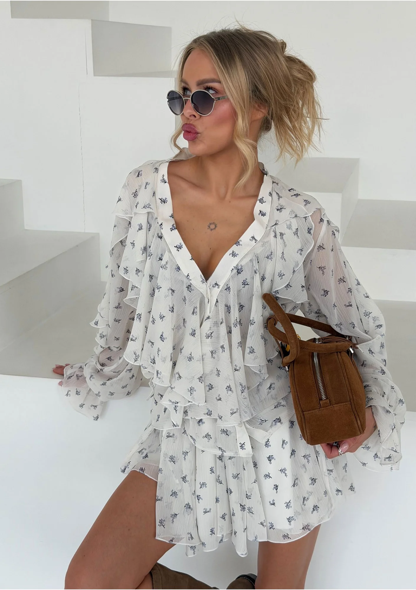Camelia - Romantyczna koszula z falbankami Blue Flowers