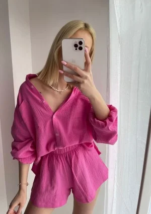 Lato to idealna pora na super przewiewny muślin! Co powiesz na wygodną i stylowo luźną koszulę? Wykonana w zmysłowym, gładkim różu w formie oversize zapewni Ci wszechstronne i częste zastosowanie.