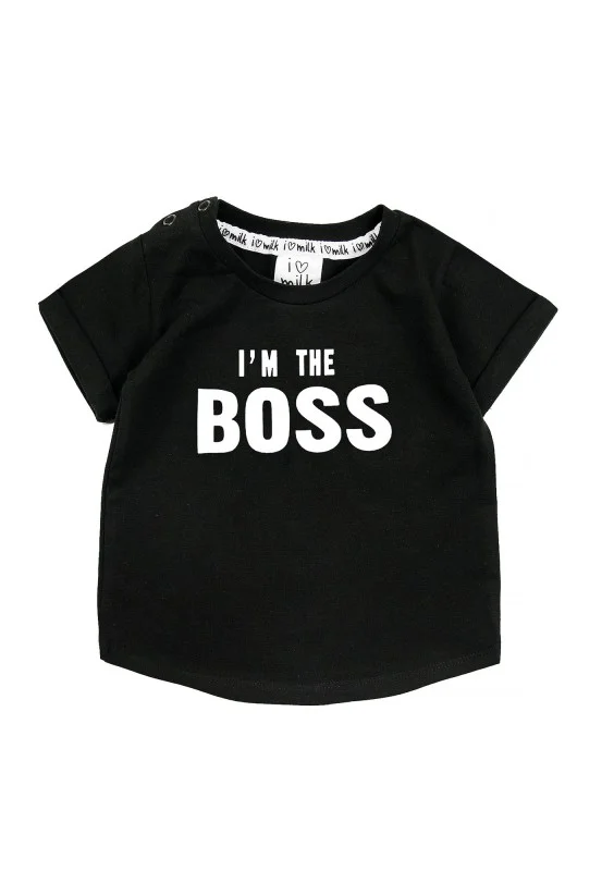 Bawełniana koszulka dziecięca dla małego szefa lub szefowej. Ubranko basic, sprawdzi się w codziennym ubiorze.