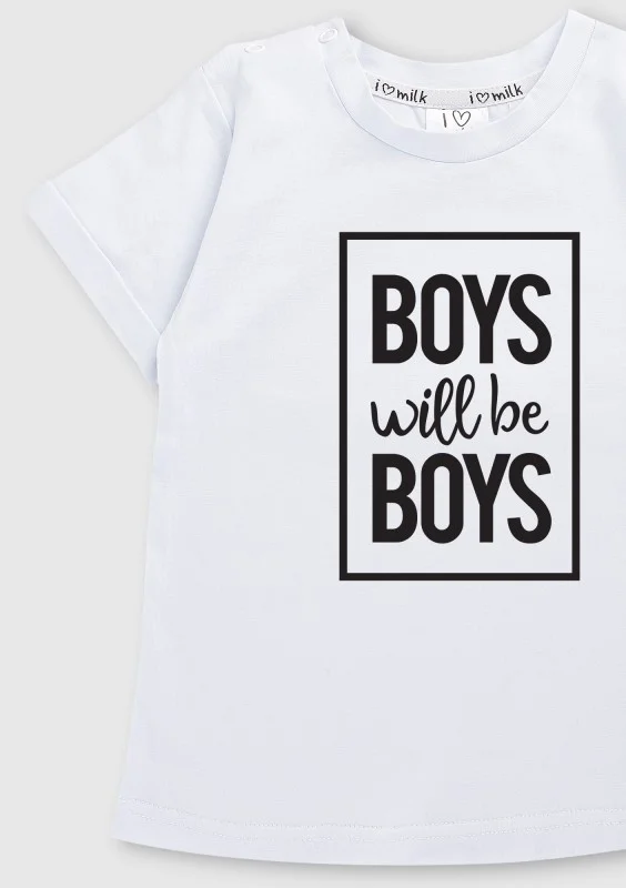 T-shirt dziecięcy "Boys will..." Biały