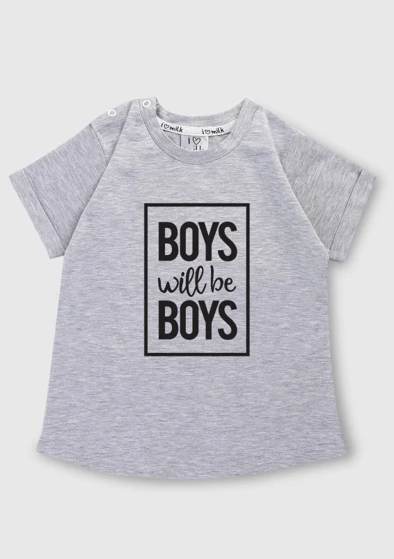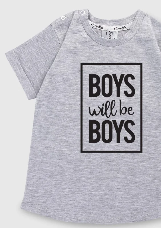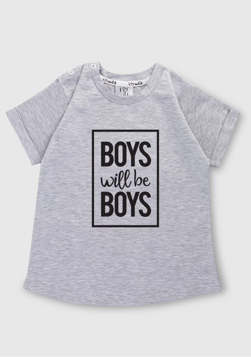 T-shirt dziecięcy "Boys will..." Szary Melanż