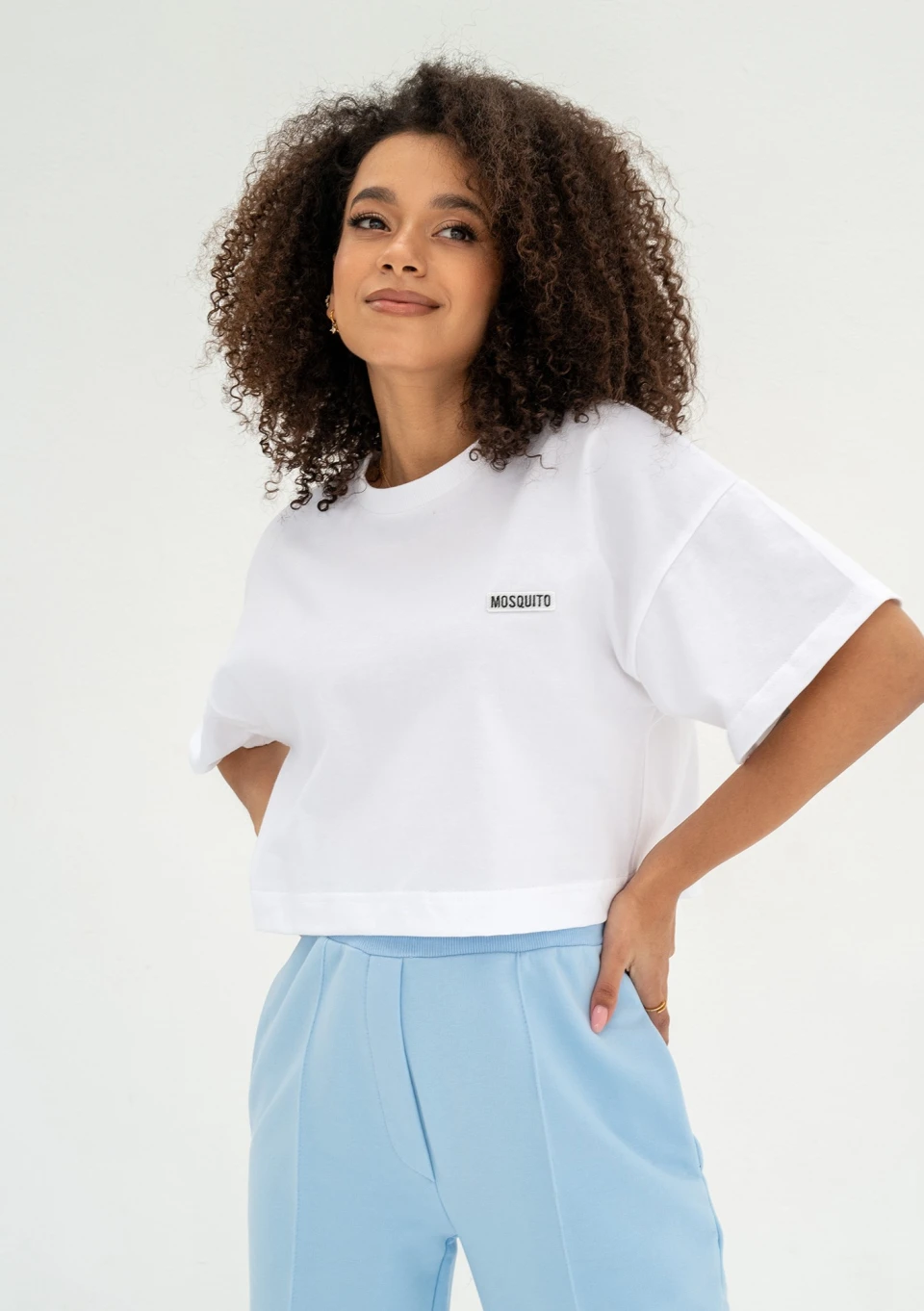 Naturalna koszulka damska bawełniana o modnym, krótkim kroju. Uniwersalny model podkreśliliśmy logiem w trwałej formie naszywki.