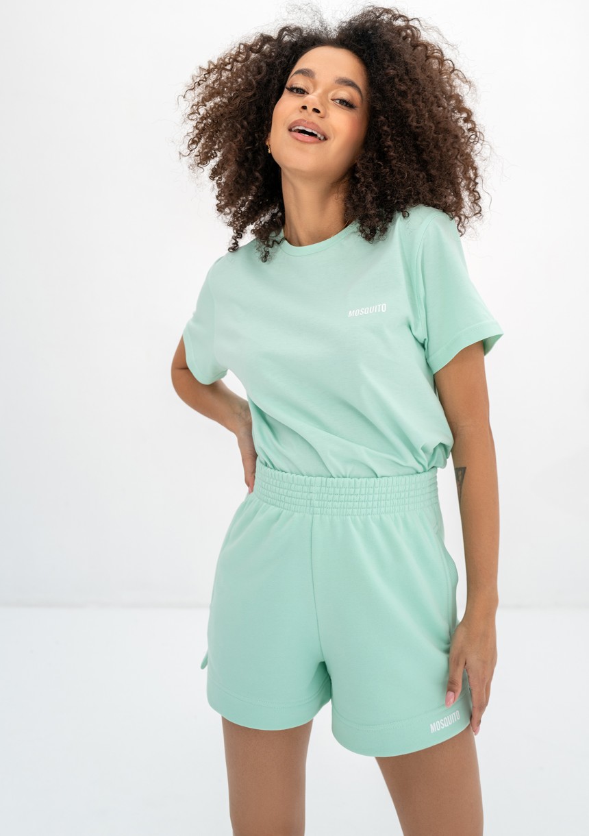 Miętowa koszulka damska z czystym składem, wykonana w 100% z bawełny. Podkreślona białym logiem.